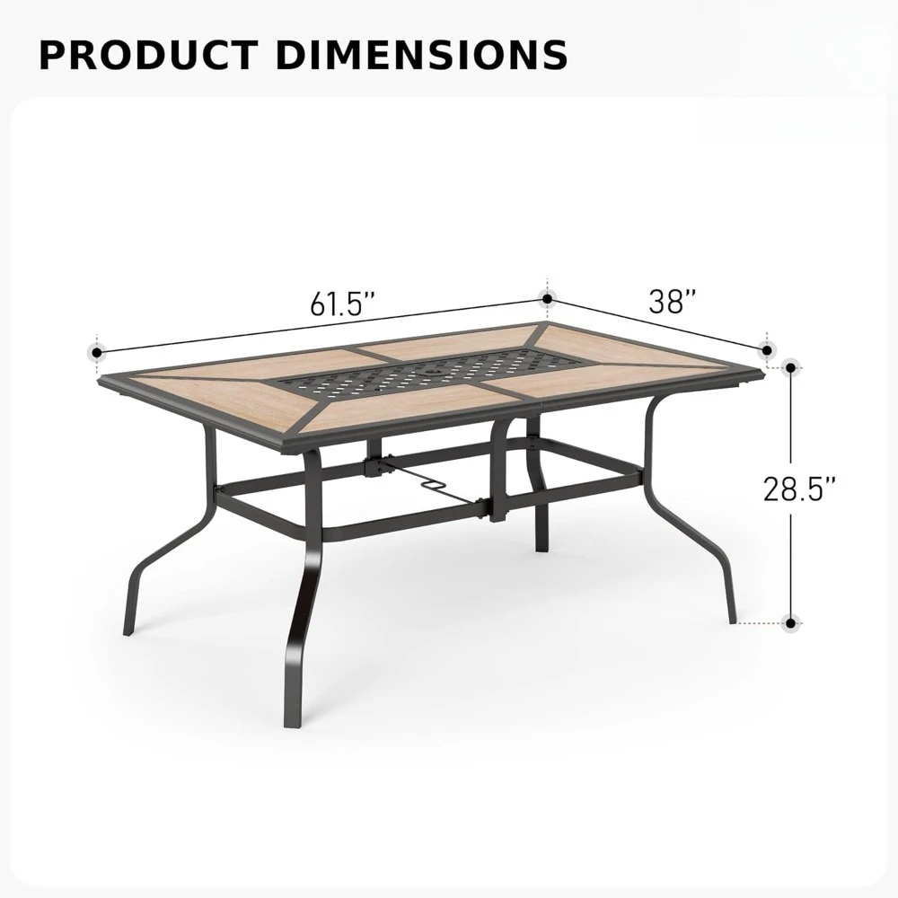 • 【Ideal for Gatherings】: Measuring 61.5″L x 38″W x 28.5″H, this rectangular patio table can accommodate 6 individuals , large enough for family dinners or small gatherings with friends to enjoy some quality time together