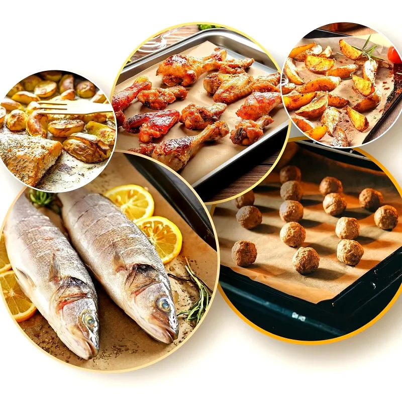 Premium Quality Material: Made from food-grade, oilproof parchment paper, these sheets are safe, durable, and resistant to high temperatures, ensuring your food is cooked to perfection without sticking or burning.