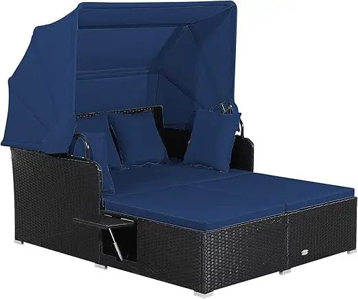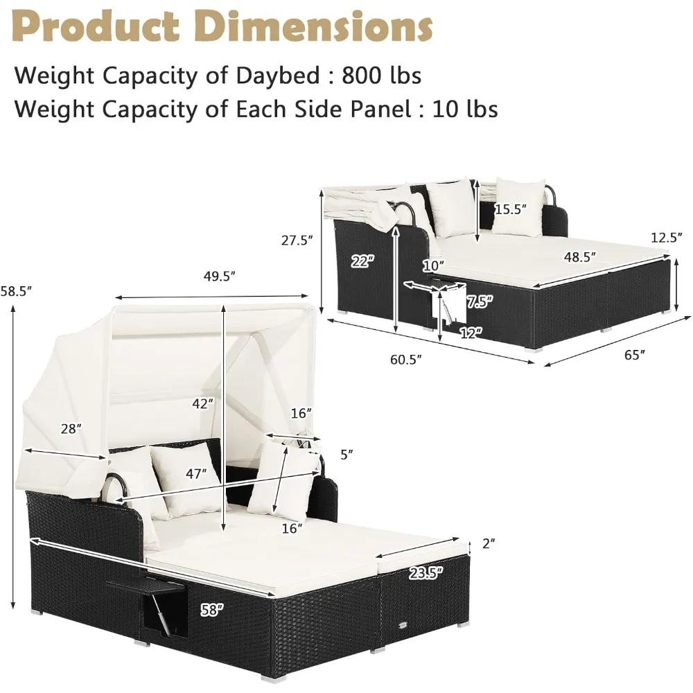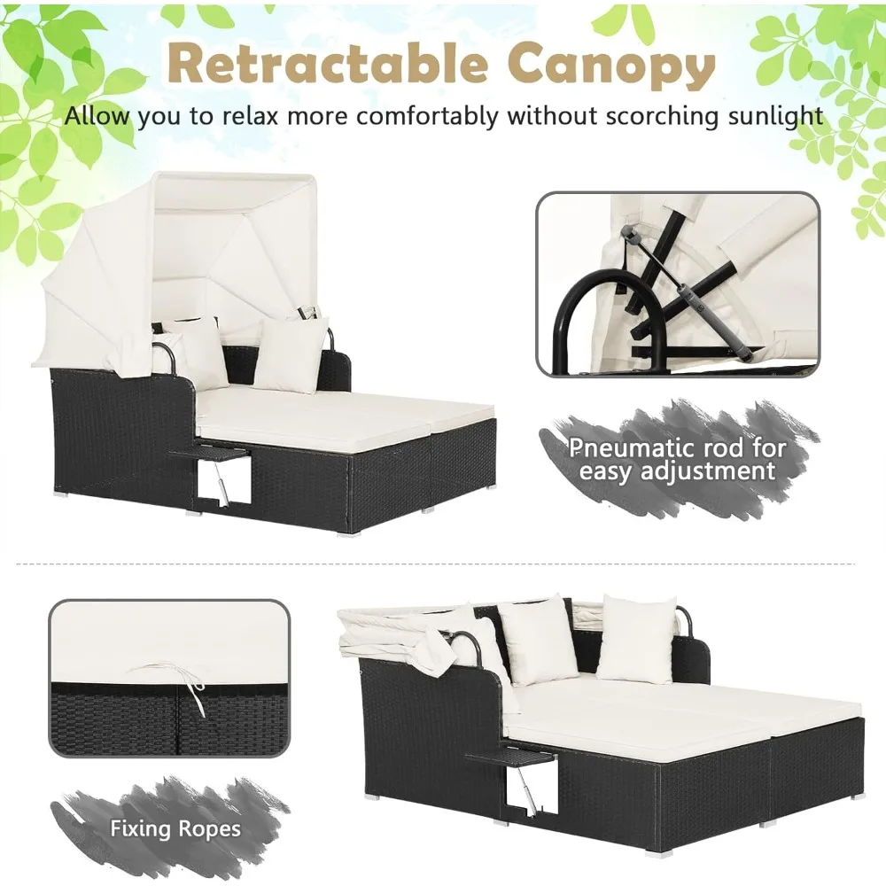 - 【Retractable & Functional Canopy】As the highlight of this daybed, the retractable canopy allows you to relax more comfortably without scorching sunlight. The pneumatic rod makes the adjustment easy and safe. Furthermore, the fixing ropes are functional to keep the canopy in right place when the canopy is retracted.