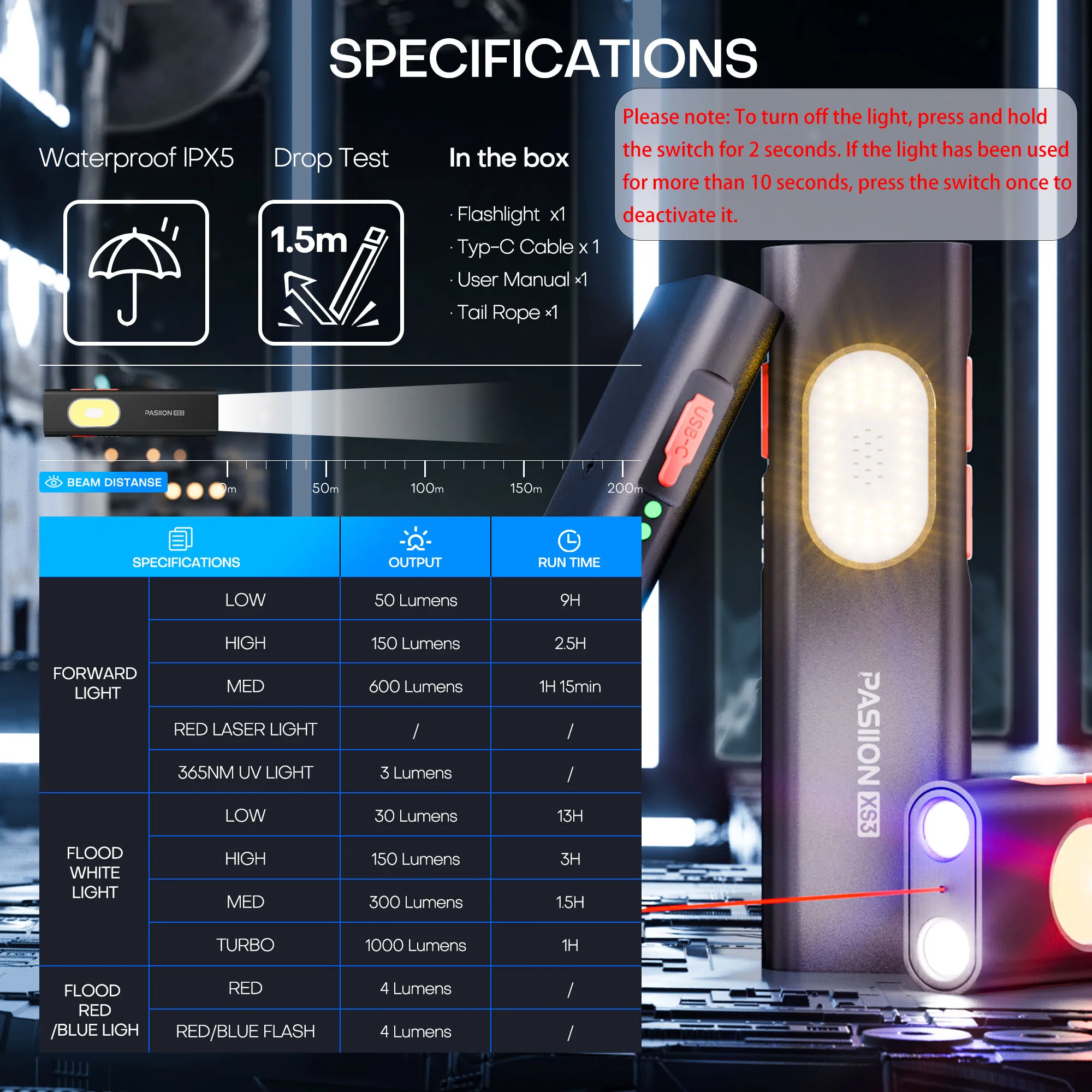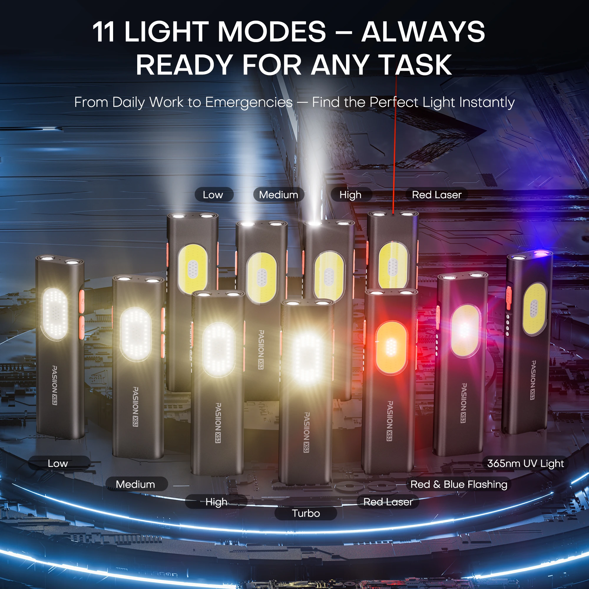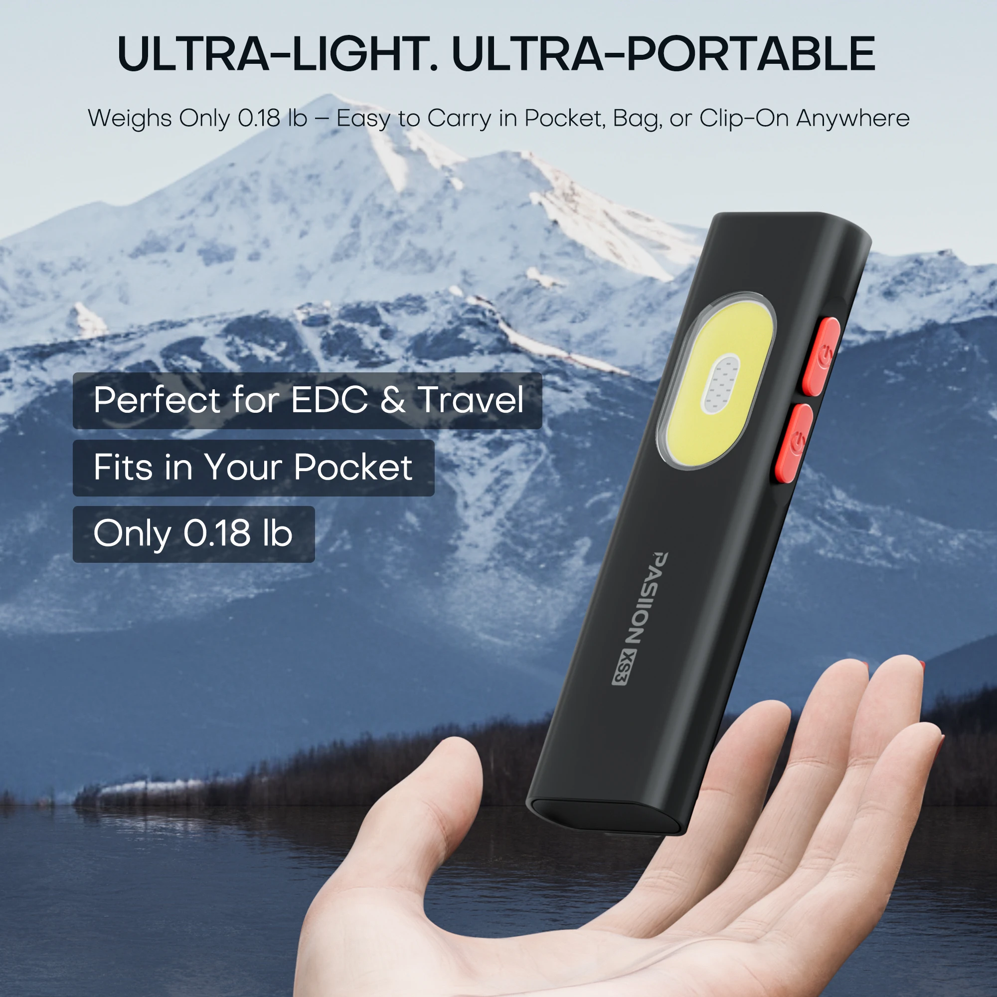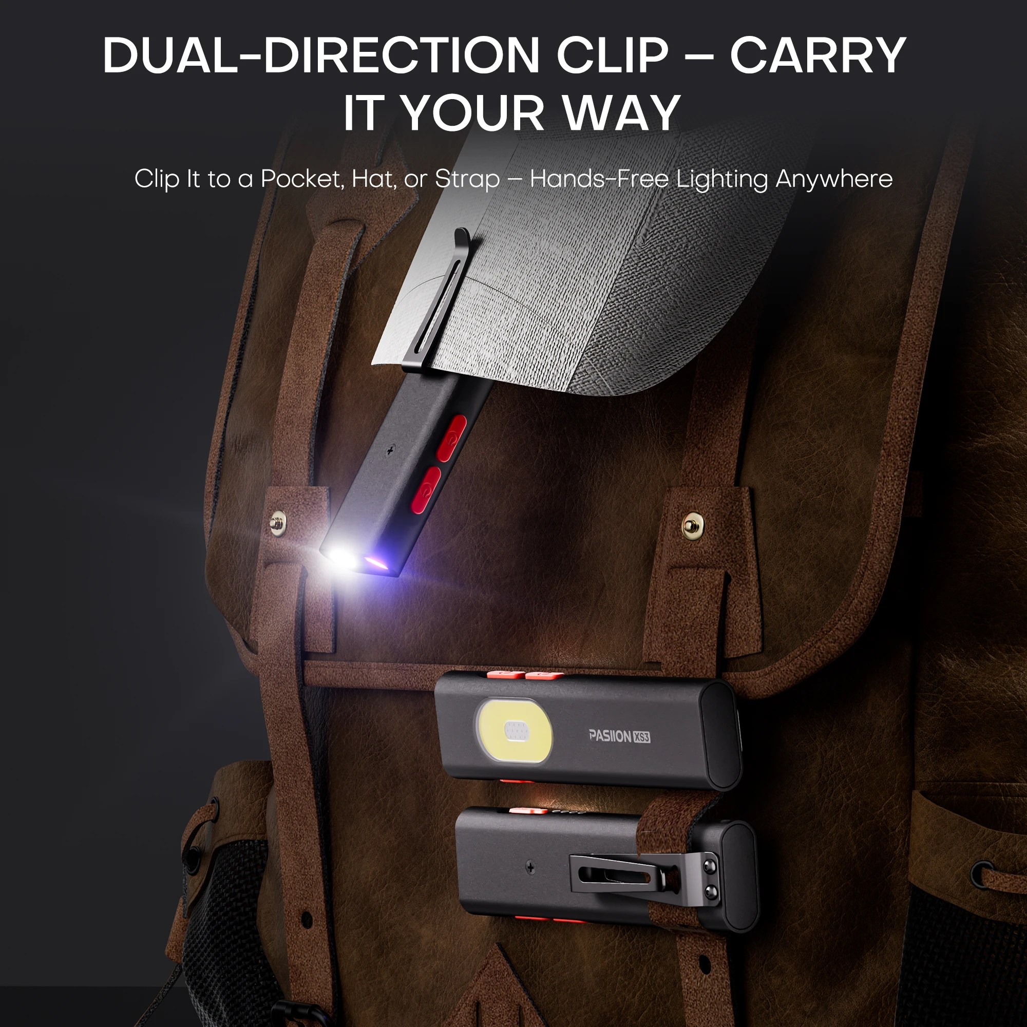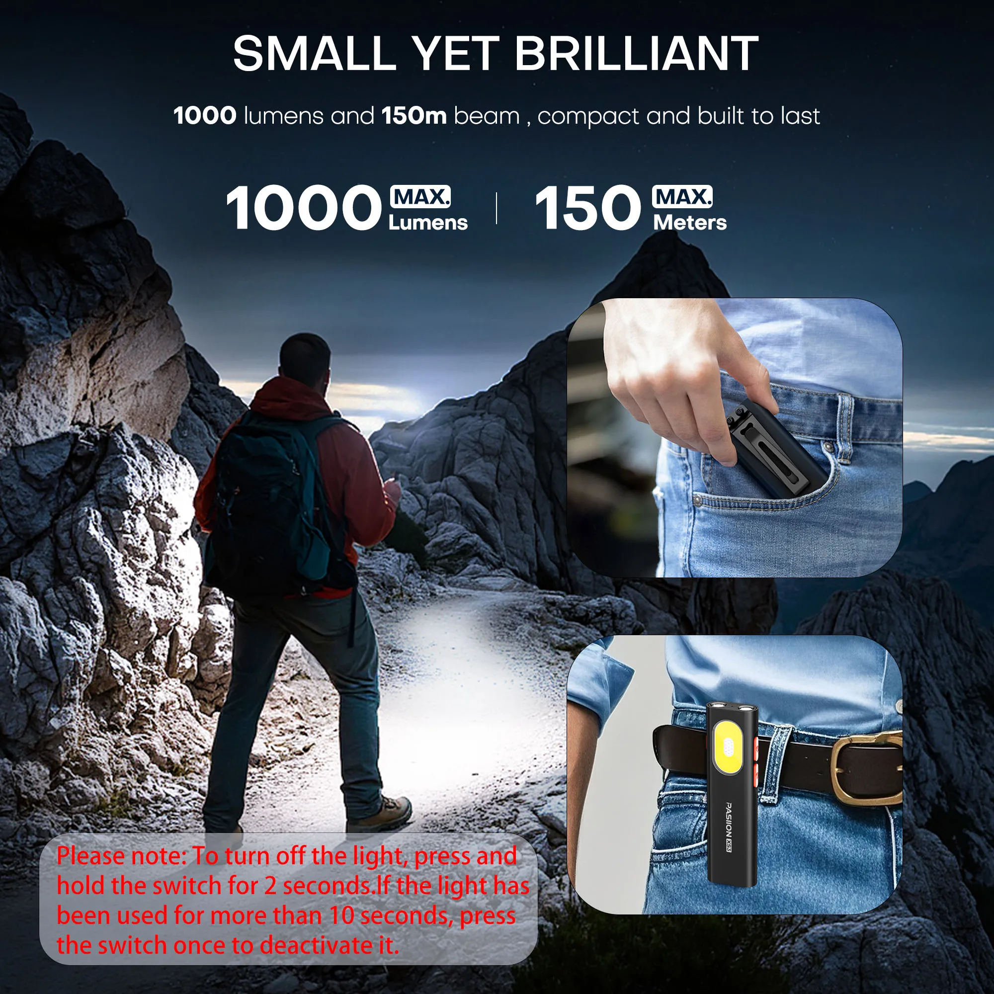 Rechargeable Flat EDC Flashlight, 1000 Lumens Pocket Flash Light,11 Light Modes – Two-way clamp Small LED Light with UV, Red Las