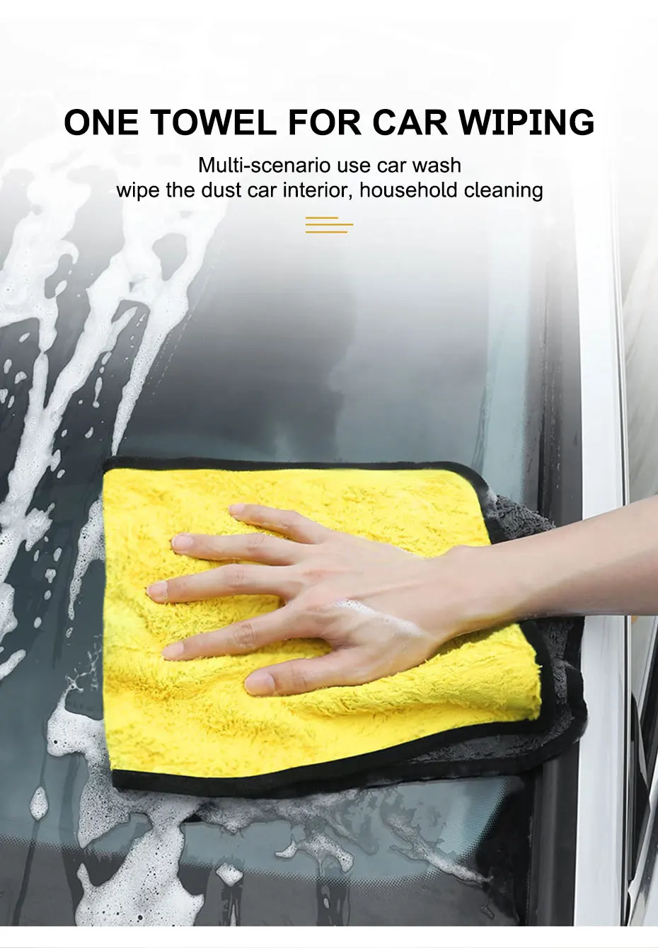 SEAMETAL Microfiber Car Washing Towel 400GSM Double-Sided Coral Velvet Clean Towels High Water Absorption Car Wash Drying Cloth