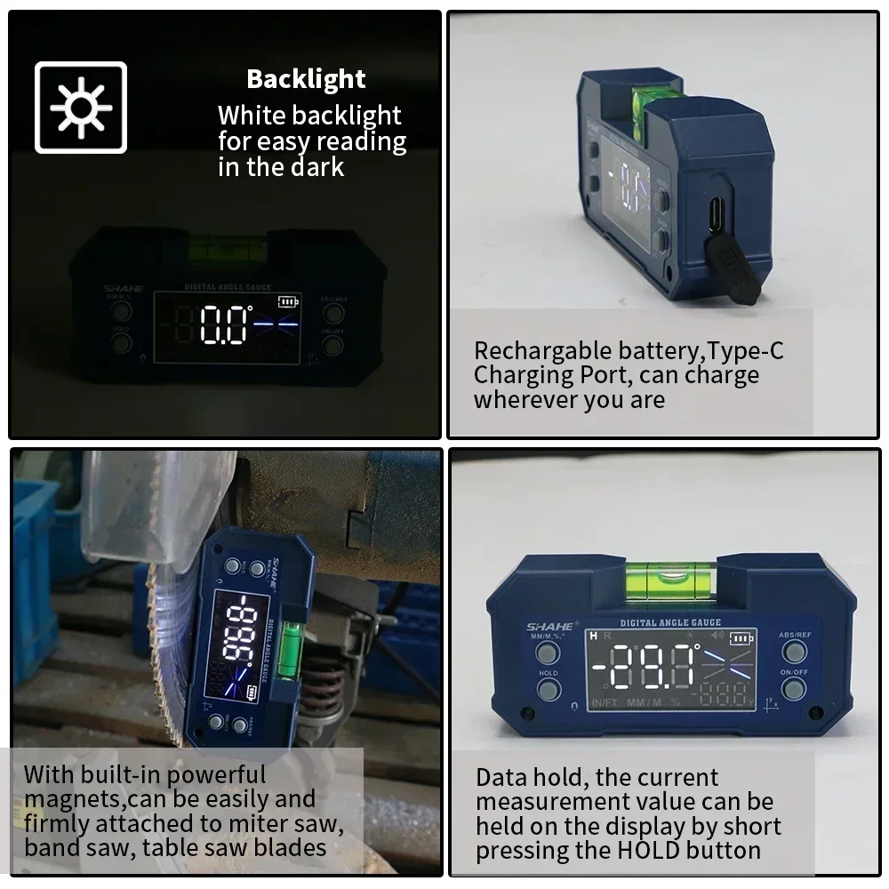 SHAHE Digital Level Inclinometer Dual-axis Electronic Protractor Rechargable Bevel Box Electronic Level Angle Finder Gauge