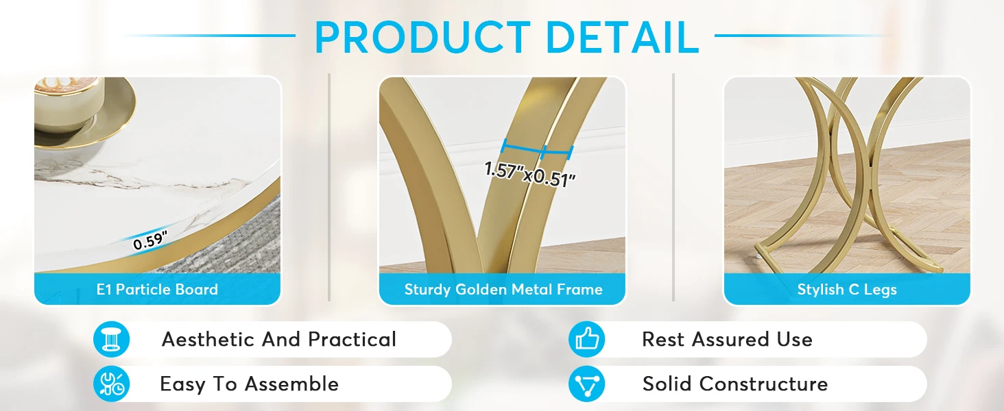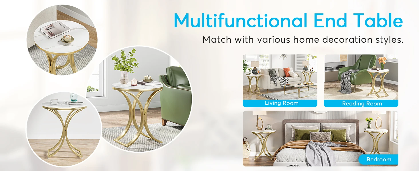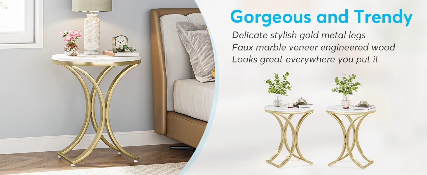 Bedside Table with Gold Metal Frame for Living Room