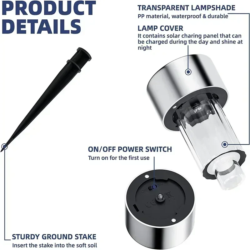 Easy Installation: No complicated instructions or tools required! Our solar path lights are designed for effortless installation. No need for intricate instructions or tools. Simply flip the switch and securely insert the stake into the soil. Enjoy stable and reliable lighting wherever you desire. These lights provide the perfect combination of simplicity and functionality.