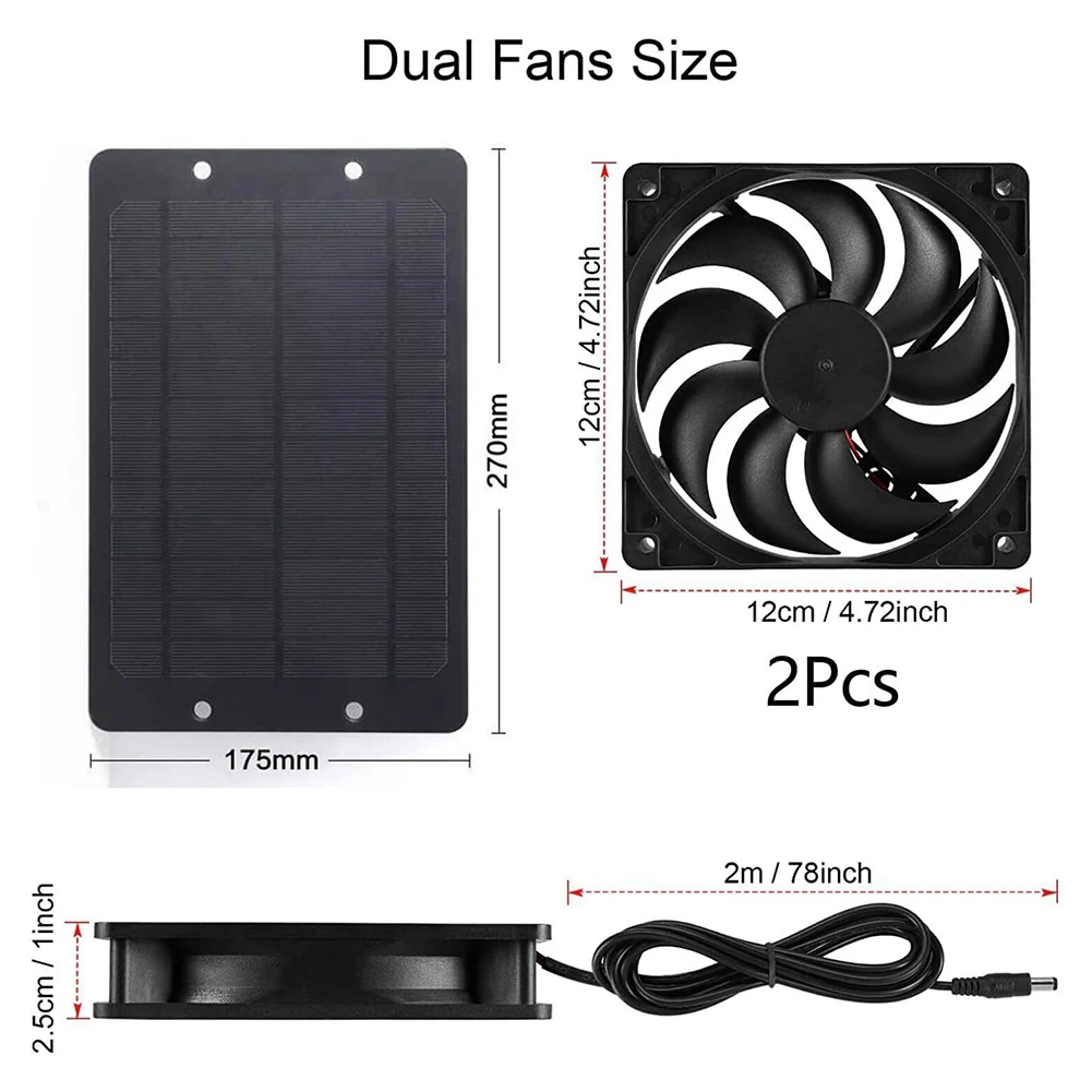 *Solar powered: This 12V 10W dual exhaust fan is powered by solar energy, making it environmentally friendly and energy-saving. It operates when sunlight directly shines on the solar panel, ensuring optimal performance and efficiency.
