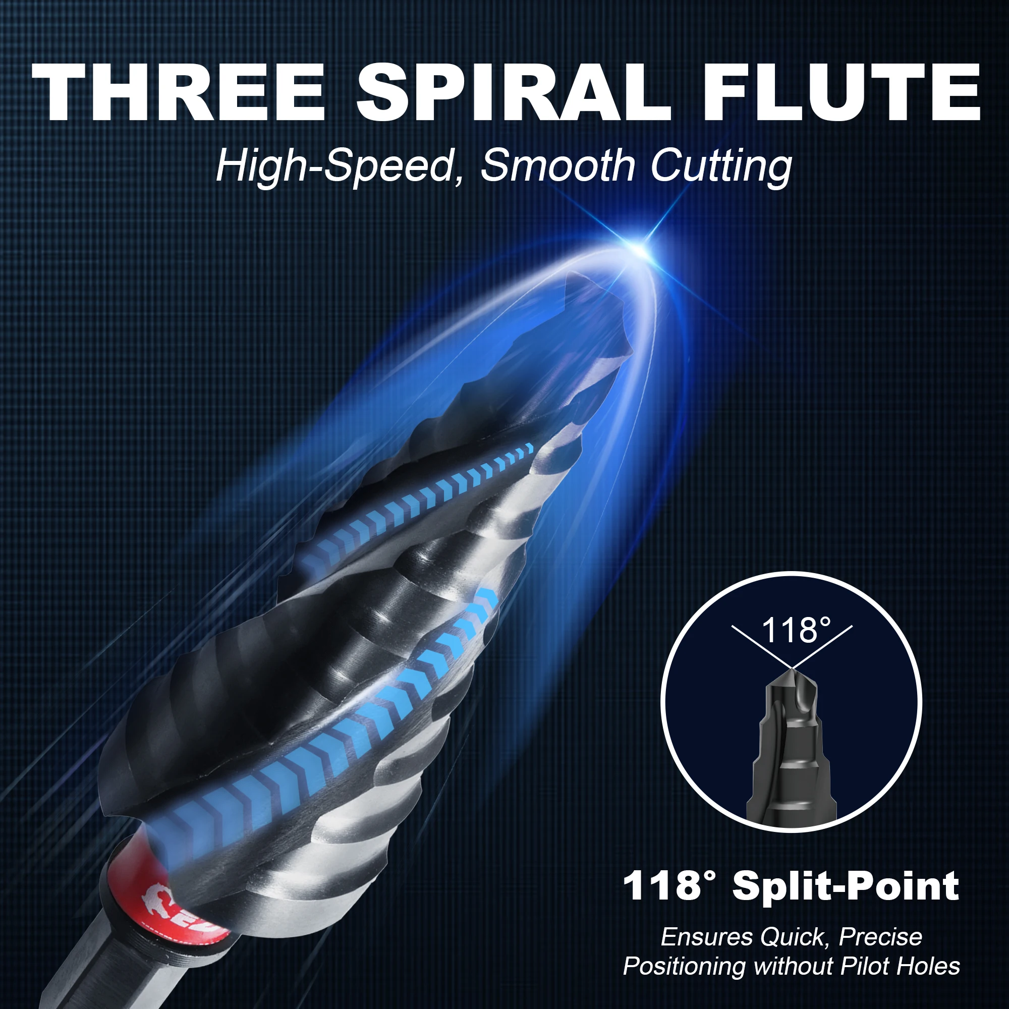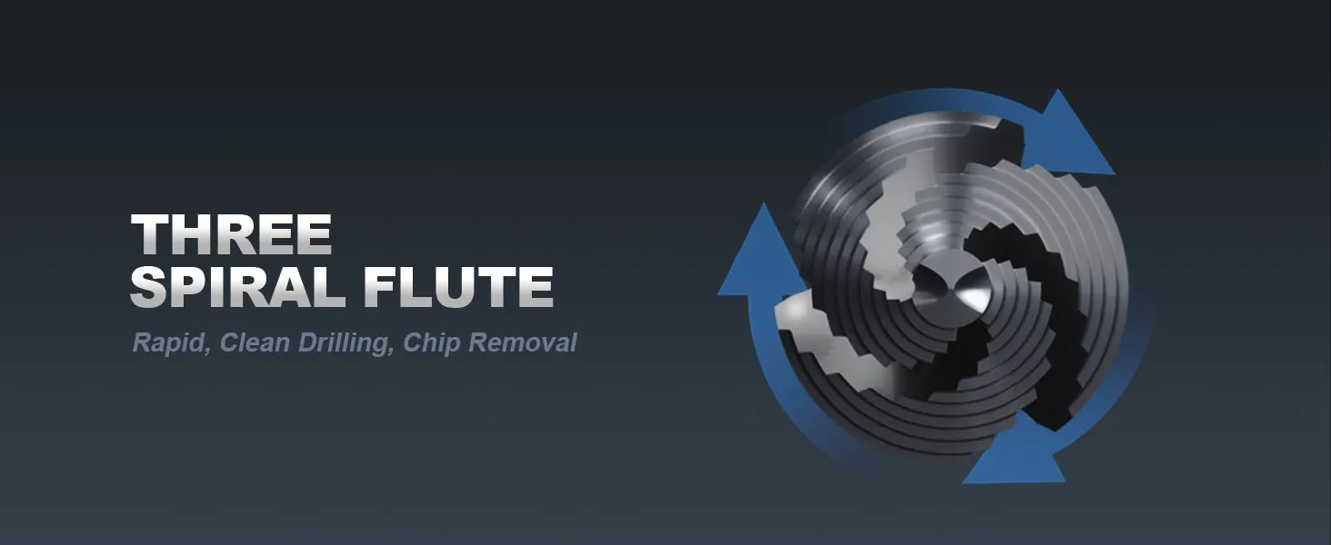 【C-Profile Design】EZARC Step Drill Bits feature a triple-flute design for enhanced stability, effectively addressing issues of deviation during the cutting process. Additionally, 'C-profile' cutting edge ensure smoother cutting and 2X increase in cutting speed.