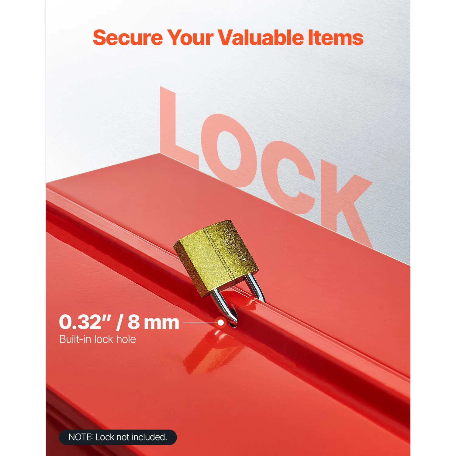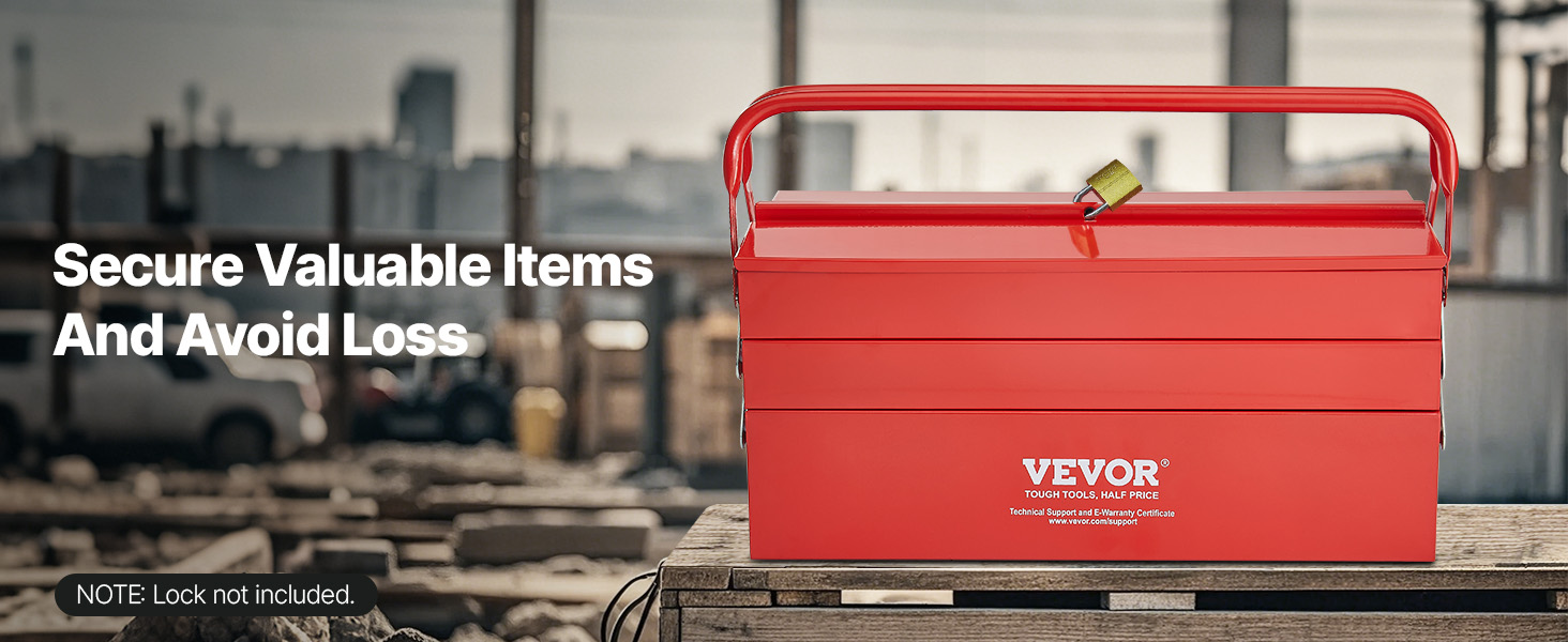 Reliable Security: With a built-in lock hole that fits a 0.32-inch lock (sold separately), this toolbox keeps your items secure and protected from theft, providing peace of mind while on the move.