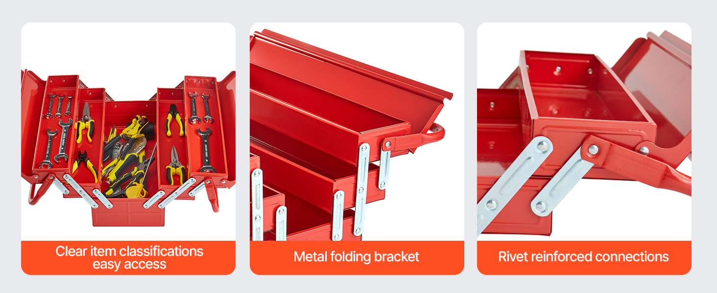 Effortless Access: The toolbox features a flip-top lid for smooth and easy opening. Reinforced metal folding connectors ensure the lid stays stable and opens/close without difficulty, making access to your tools convenient.