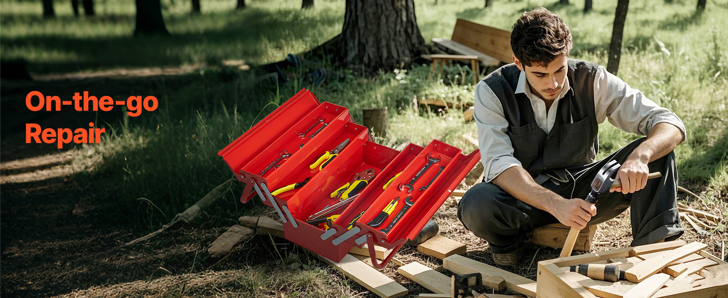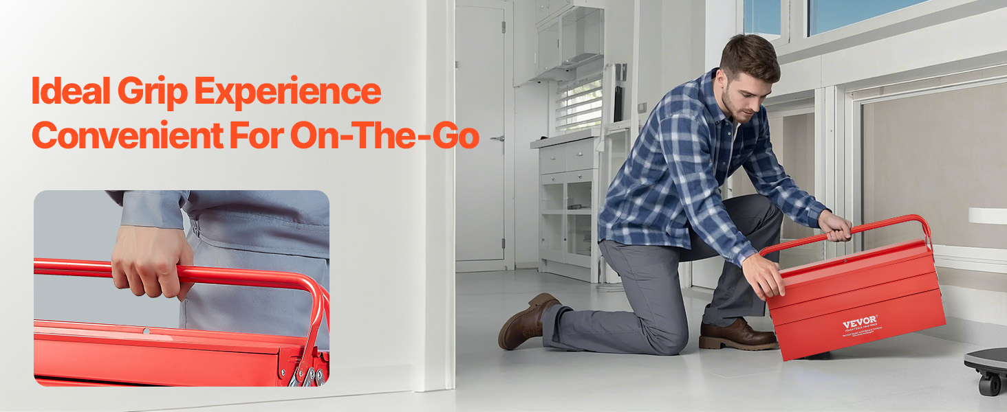 Convenient for Transport: Equipped with dual handles, this portable toolbox is easy to carry, even when full. The comfortable grip ensures no strain while moving it, and the handles fold away, allowing unobstructed access to your tools.