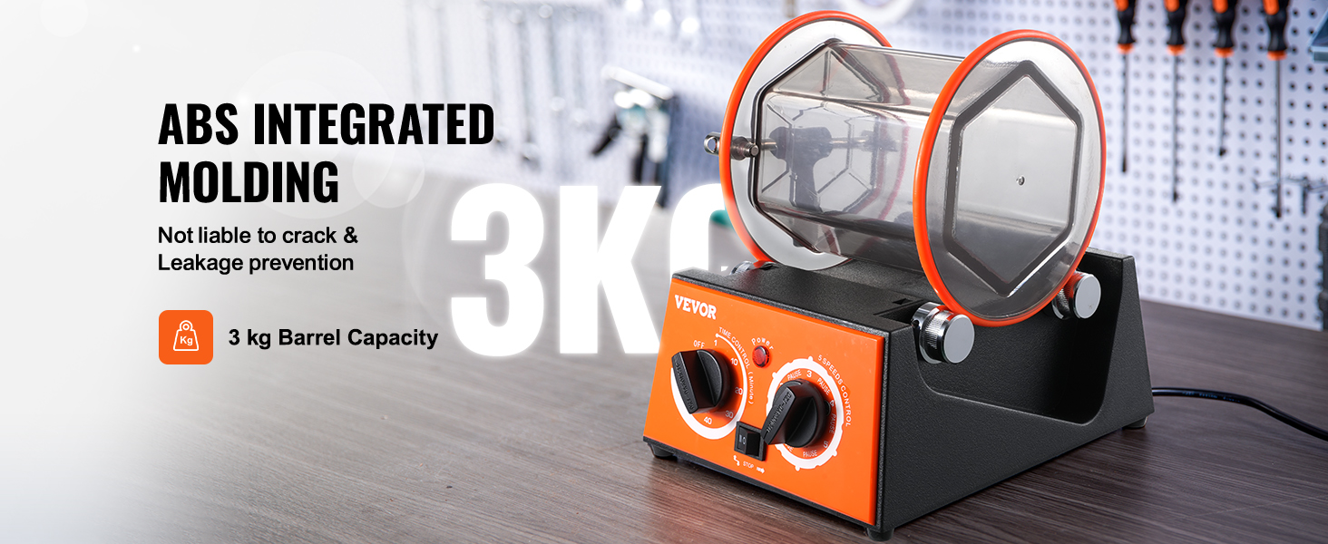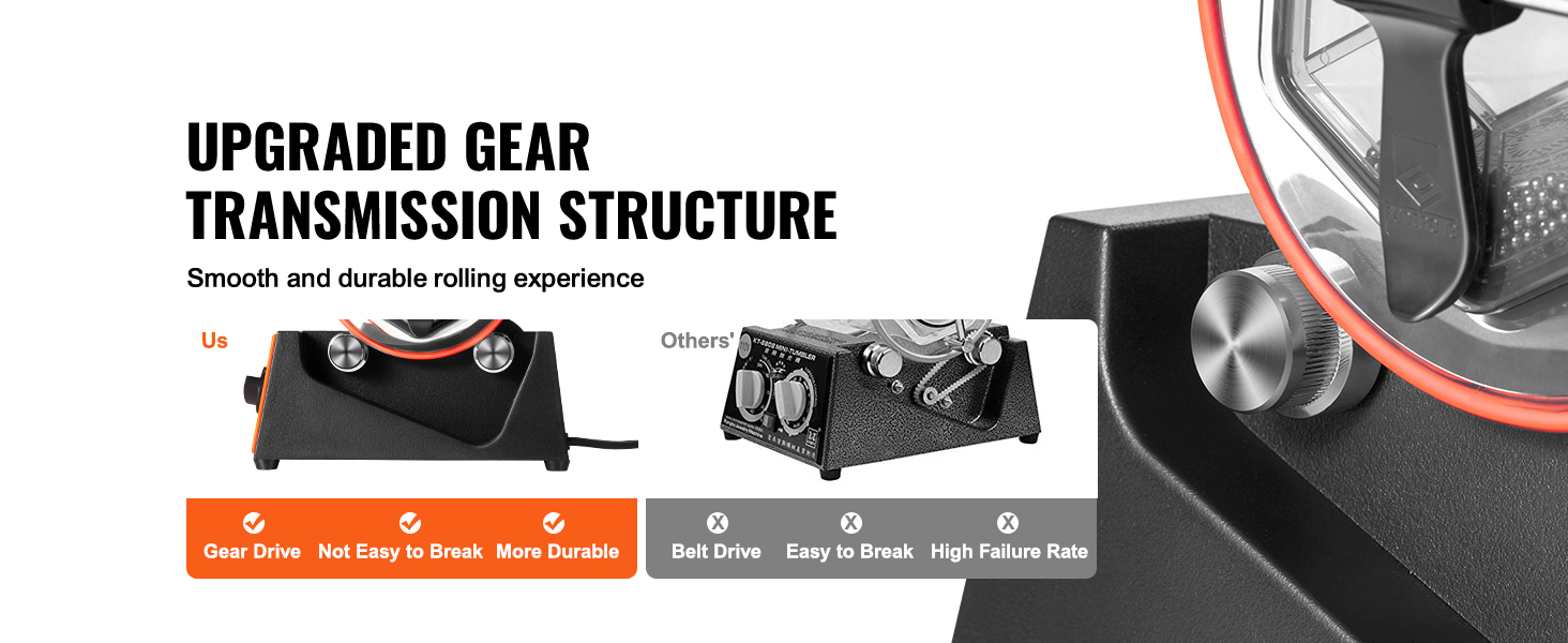 Reliable Material: The 3 kg / 5kg rotary tumbler, made of tough polycarbonate, features an integrated molding technique, leak-proof design, and long service life. The new gear transmission structure ensures a smoother and more stable operation without breaking worries.