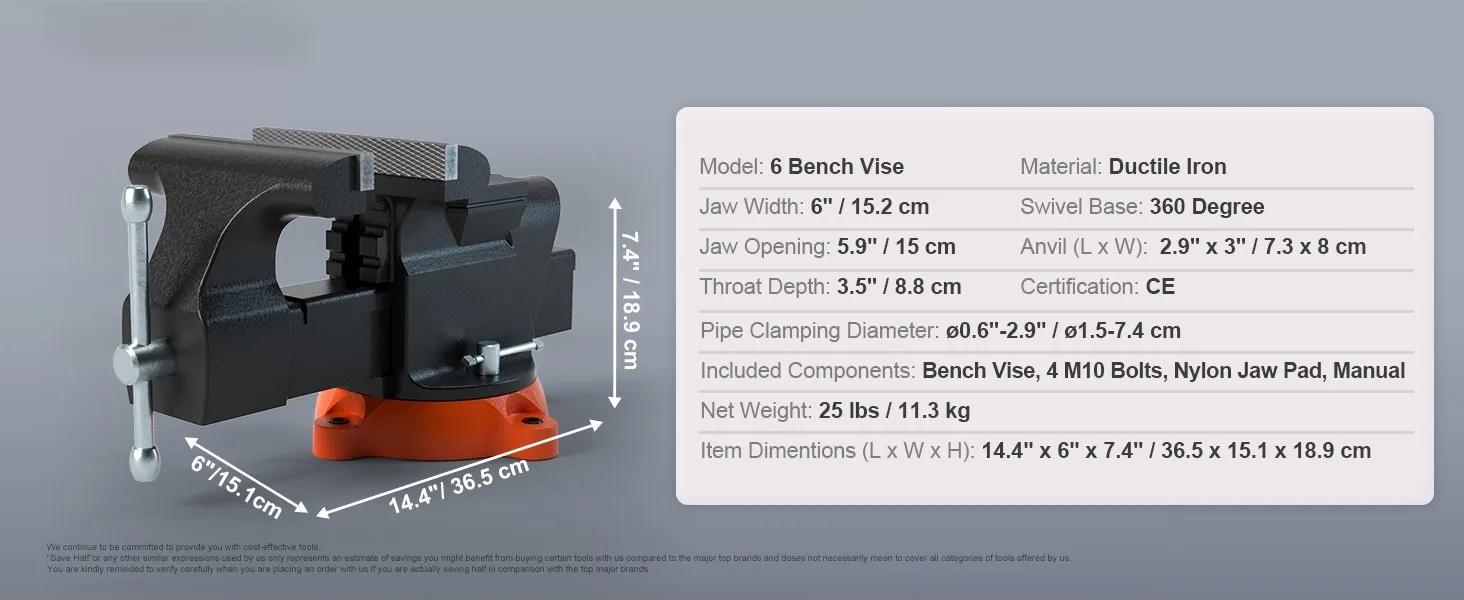 • 【Considerate Vise Kit】: The updated accessories of this vise are now more thoughtful than ever! Comes with a set of nuts, screws and a manual for hassle-free installation. No need to purchase extra fittings. They can be easily installed on your bench upon arrival. Set up and get to work!