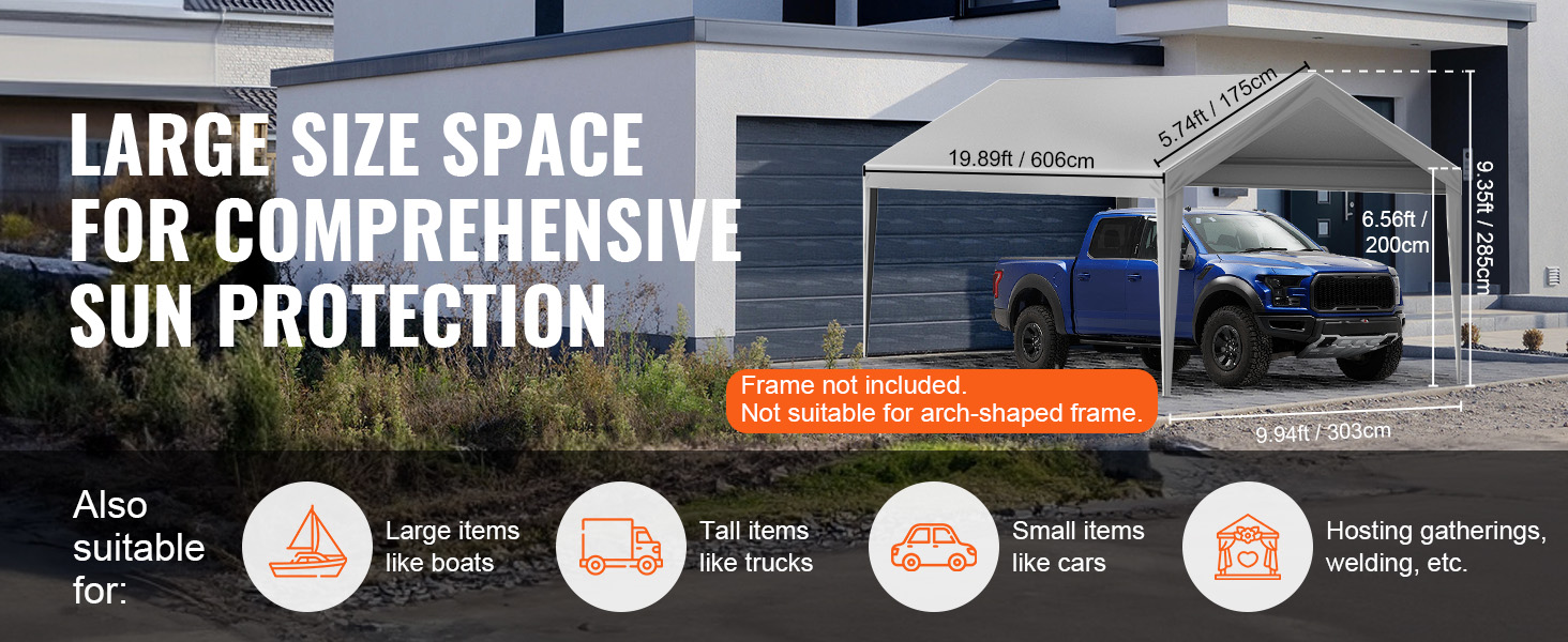 Wide Application: This canopy cover can not only replace garage canopy tops and set up temporary garages for parking various vehicles, but can also be used for parties, weddings, creating shaded areas, and more creative uses awaiting your discovery!