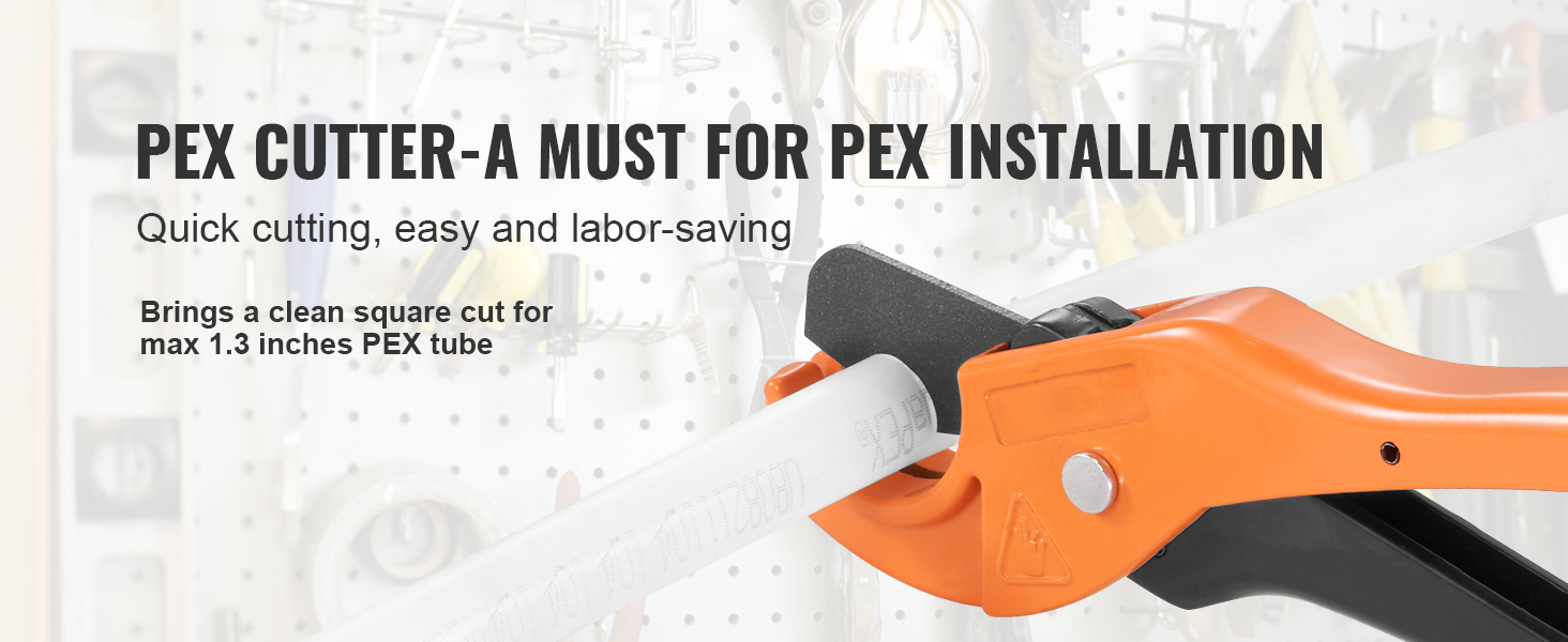 Durable PEX pipe cutter is an essential tool in PEX installations, providing clean cuts for PEX pipes up to a maximum diameter of 1.3 inches. It features efficient cutting performance, ensuring precise and clean pipe cuts for accurate and neat installations.