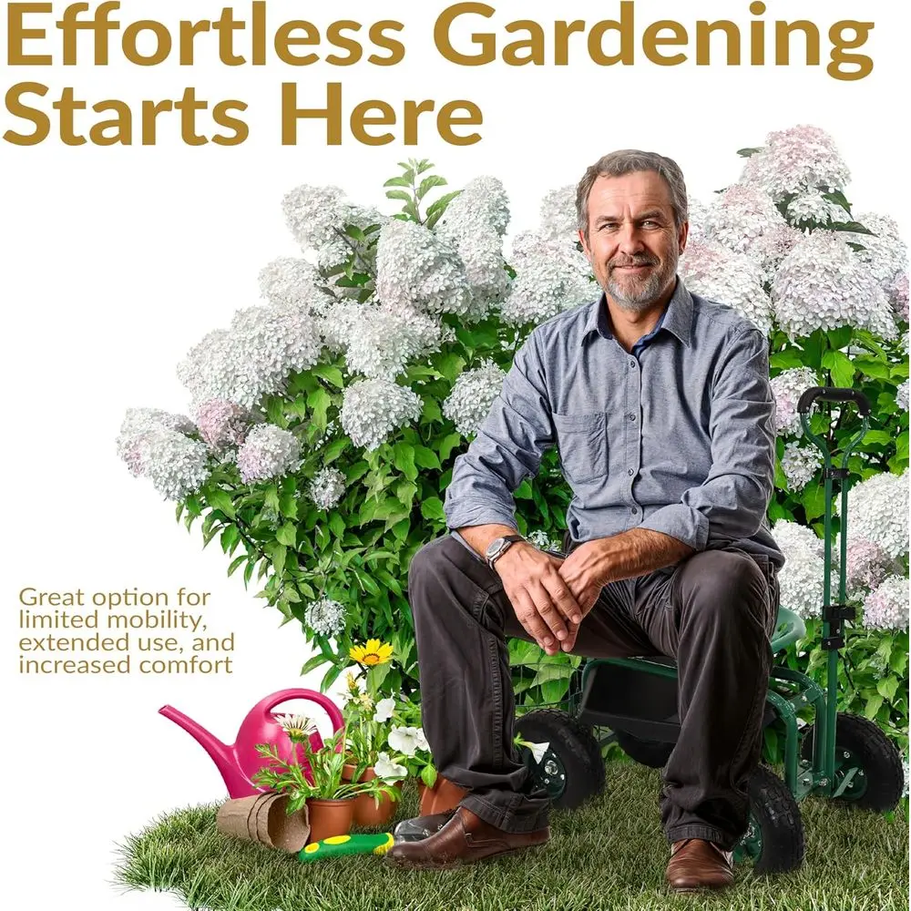 DESIGNED FOR GARDEN PROJECTS, HOBBY FARMS, AND HOME MAINTENANCE: Whether trimming low hedges, planting in raised beds, or managing daily tasks on a small homestead, this rolling cart supports comfort and mobility during repetitive outdoor chores. It’s well suited for use in residential gardens, greenhouses, sheds, or garages.