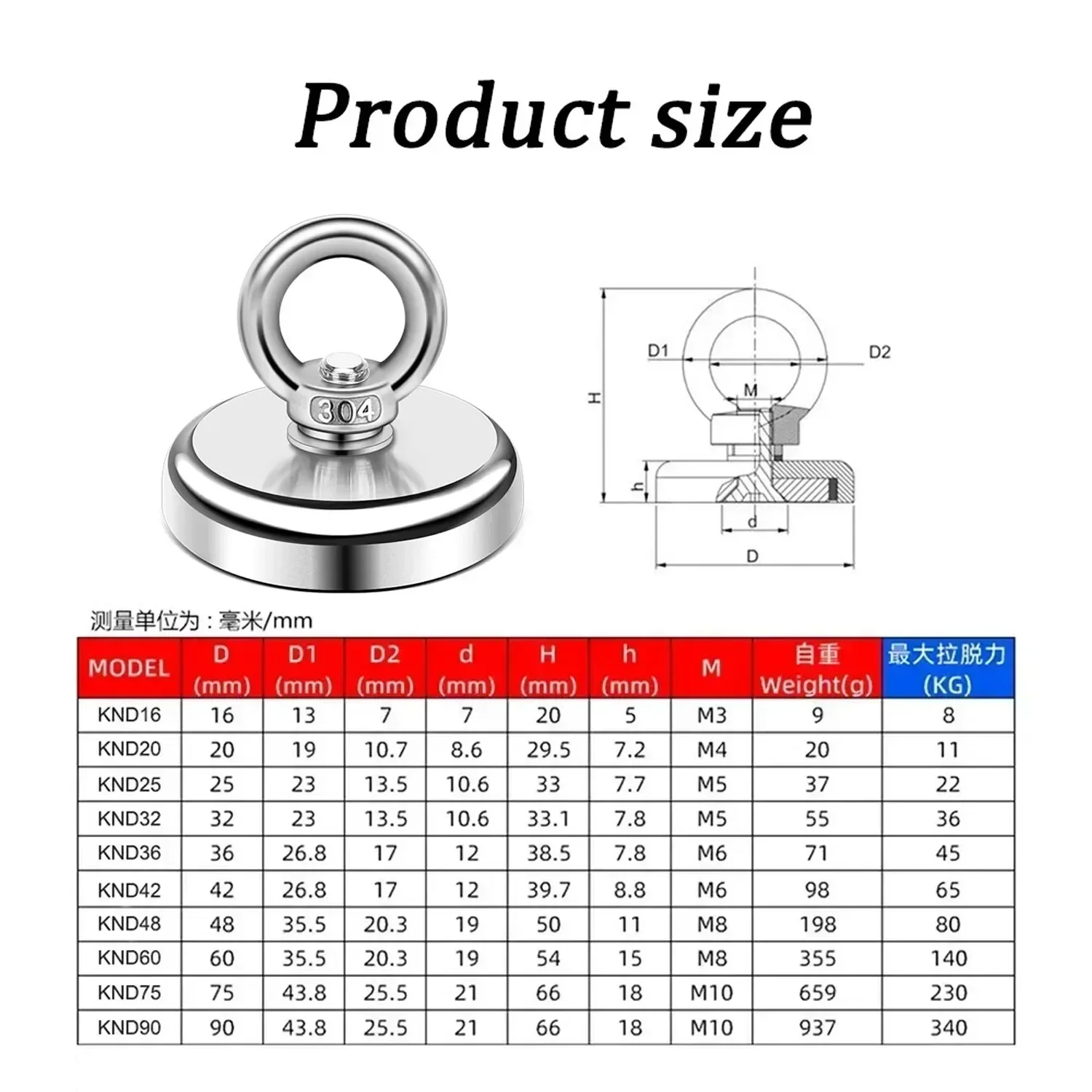 SUPER POWERFUL – This magnets is 16/20/25/32/36/42/48/60 mm in diameter, adopt strong neodymium magnet for its base. It can offer 10/19/41/70/90/134/165/265/LBS pulling strength under ideal condition.
