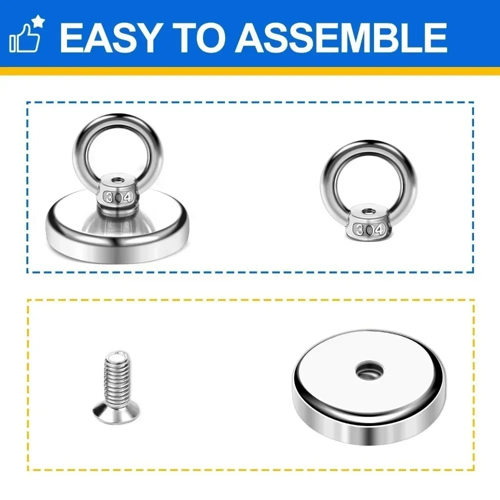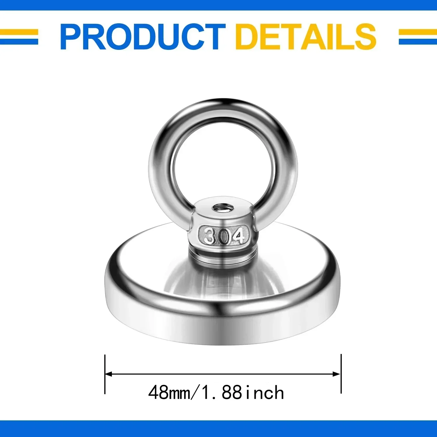 MULTI USE – Unique design with Countersunk Hole and Eyebolt Great for salvaged of various iron-containning nickel material underwater and Good idea for magnet fishing, lifting, hanging, retrieving applications. Have fun to searching items like eyebolt, screws, hooks, fasteners and so on in your warehouse garage or yard.