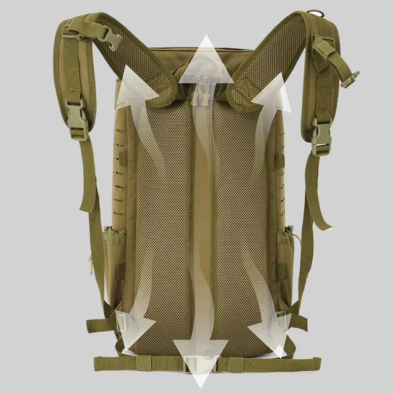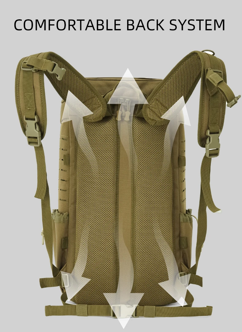 3.Designed with an ergonomic, breathable, and shock-absorbent back pad that distributes weight evenly, this climbing backpack can be carried for extended periods without causing fatigue, tailored to the contours of the human body.