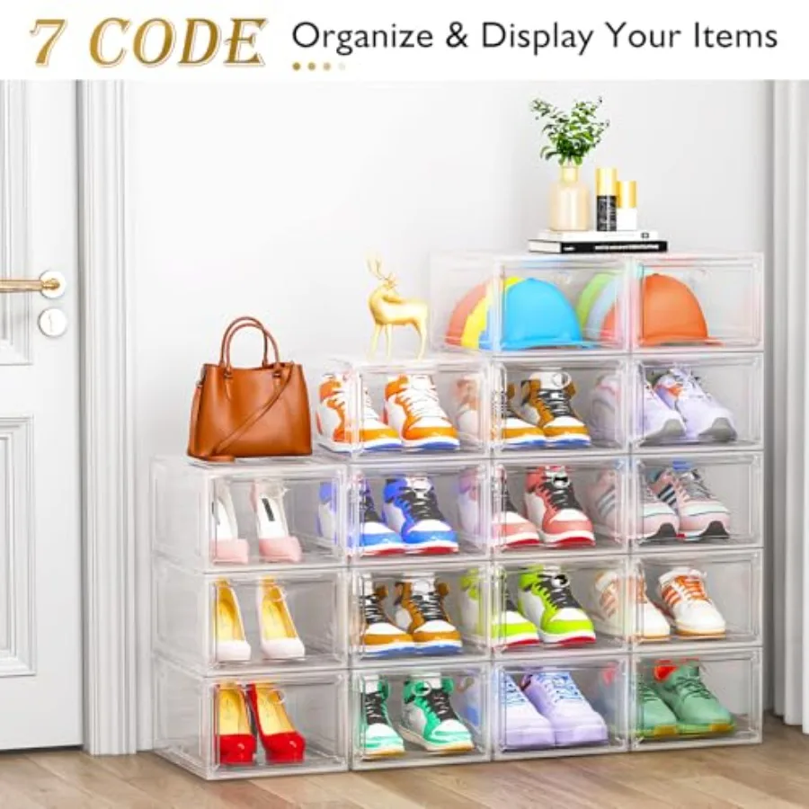 Thicken Sturdy Clear Shoe Storage Organizer with Magnetic Door Stackable Boxes for Closet