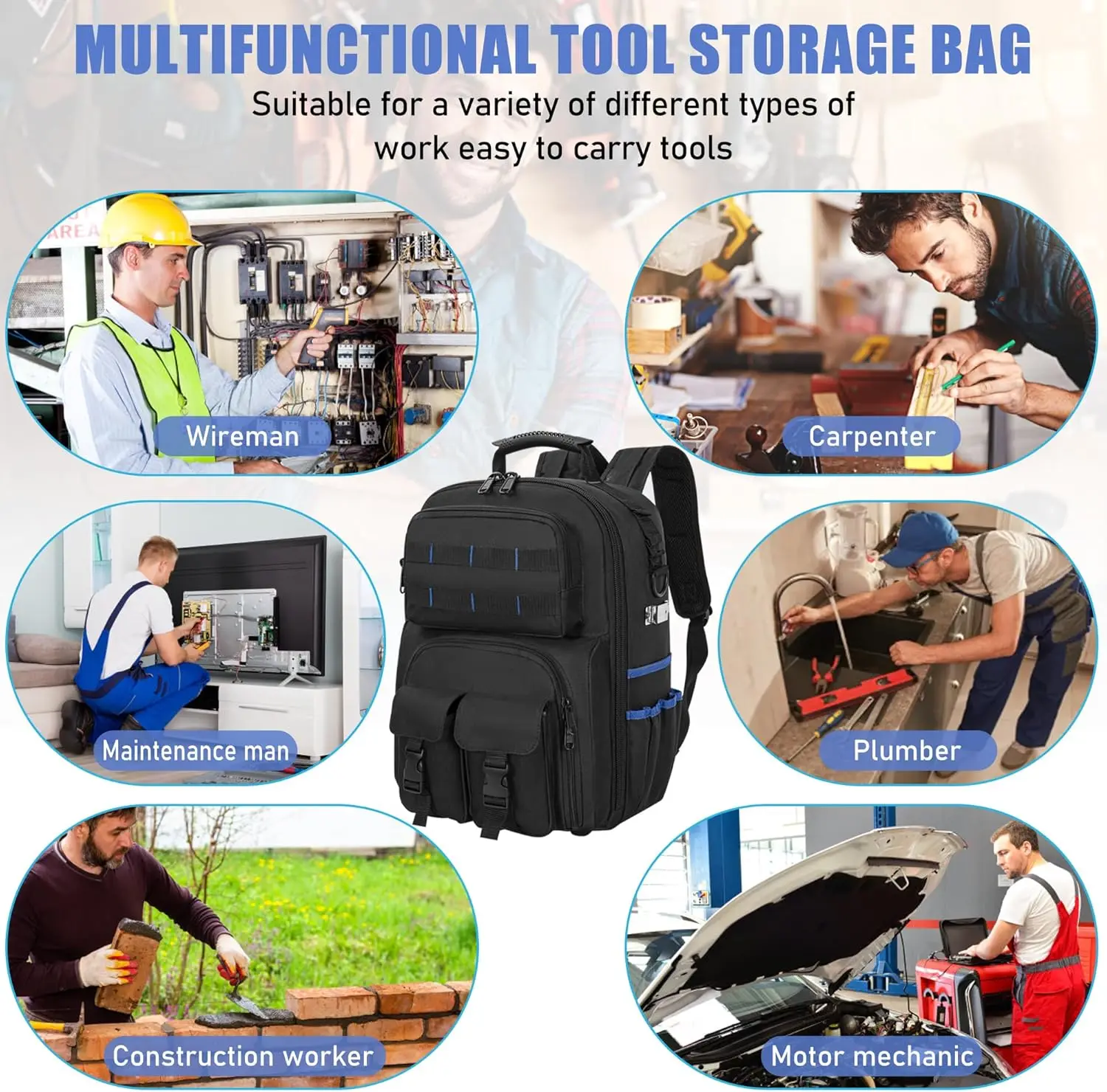 Tool Backpack, Heavy Duty Tool Bag with Padded Shoulder and Removable Tool Organizer, Water-Resistant Work Backpack, for Electricians