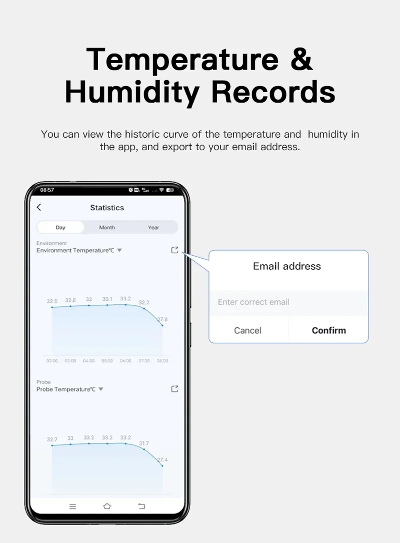 2. External sensor only support temperature measurement. Does not support humidity measurement.