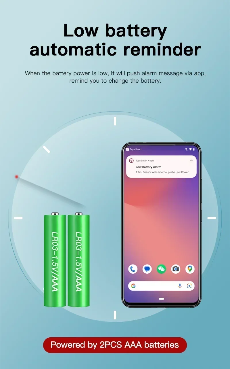Tuya WiFi Temperature Humidity Sensor with External Probe Wireless Thermometer App Monitor for Freezer, Refrigerator, Fish Tank