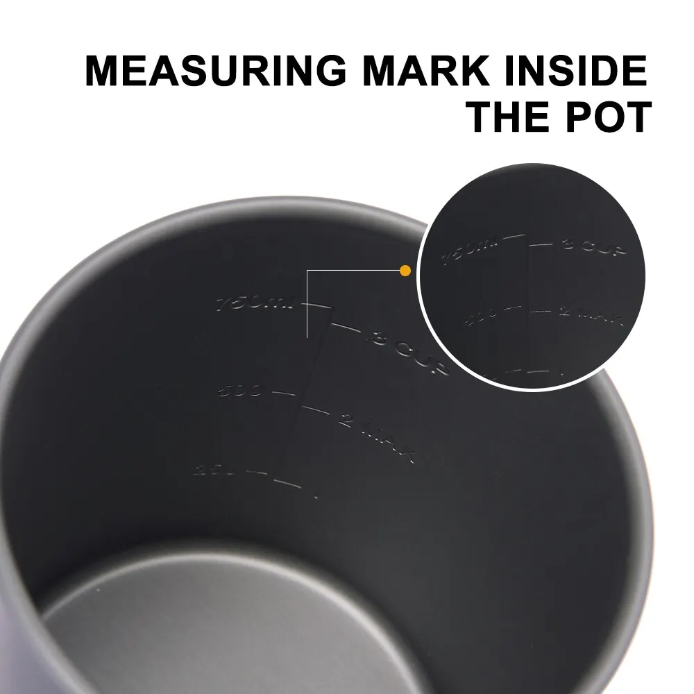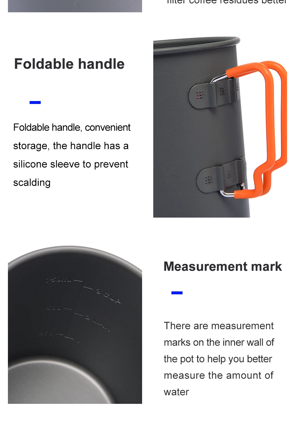 3. Material: the pot body is made of hard anodized aluminum, and the filter screen and handle are made of stainless steel