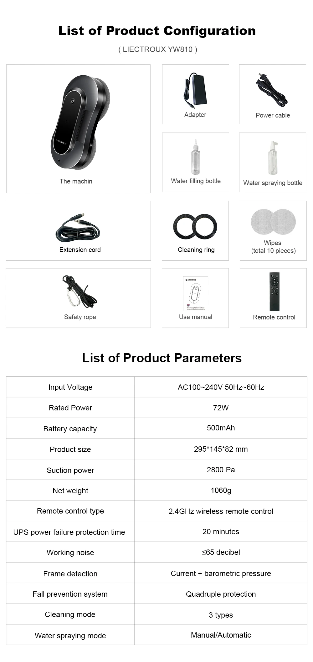Robot Window Cleaner LIECTROUX YW810 Dual Water Spray