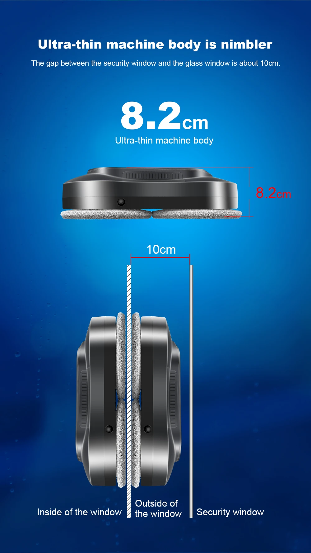 2500-3500 PA strong suction;. Firmly suck the window,more stable and safer.