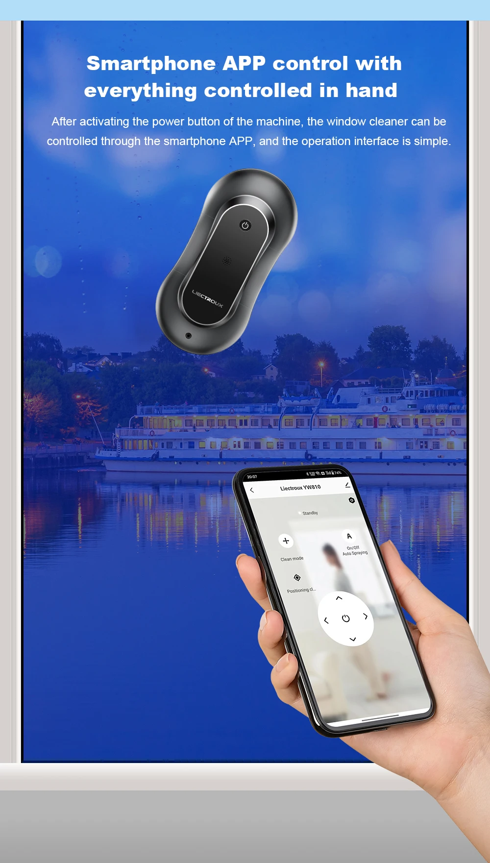 LIECTROUX YW810 window cleaning robot through theAPPcontrol.