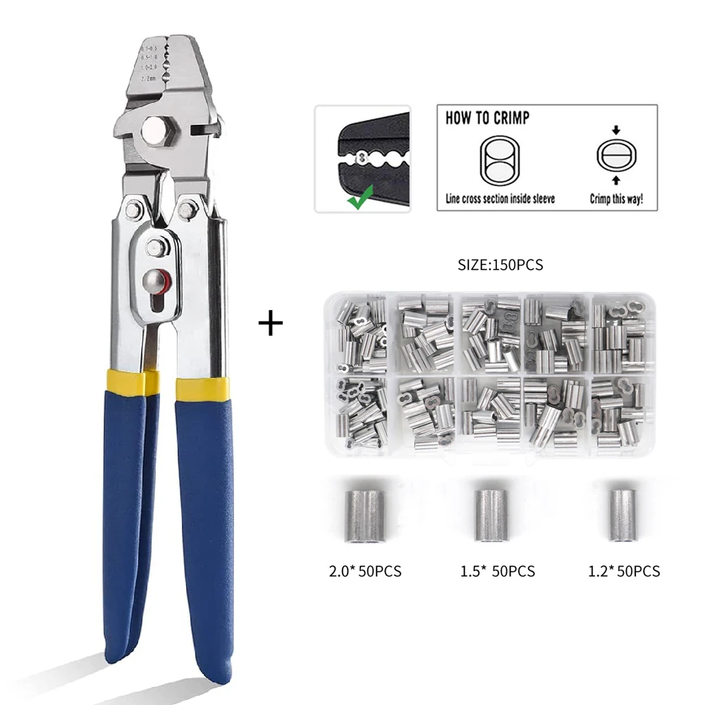 Stainless Steel Fishing Pliers Wire Rope Crimping Tool with 150Pcs Ferrule Crimping Loop Kit for Crimpers & Crimping Sleeves Kit