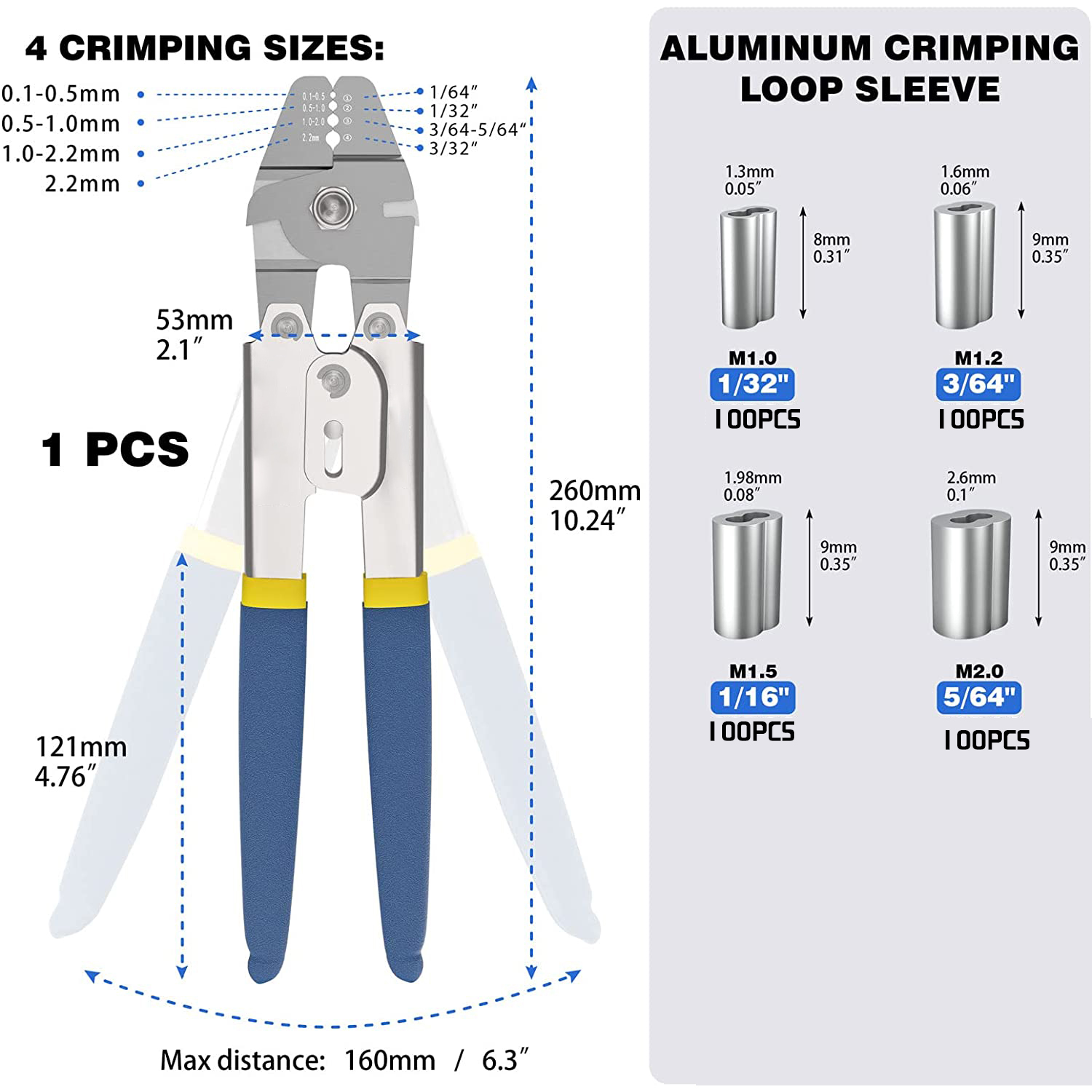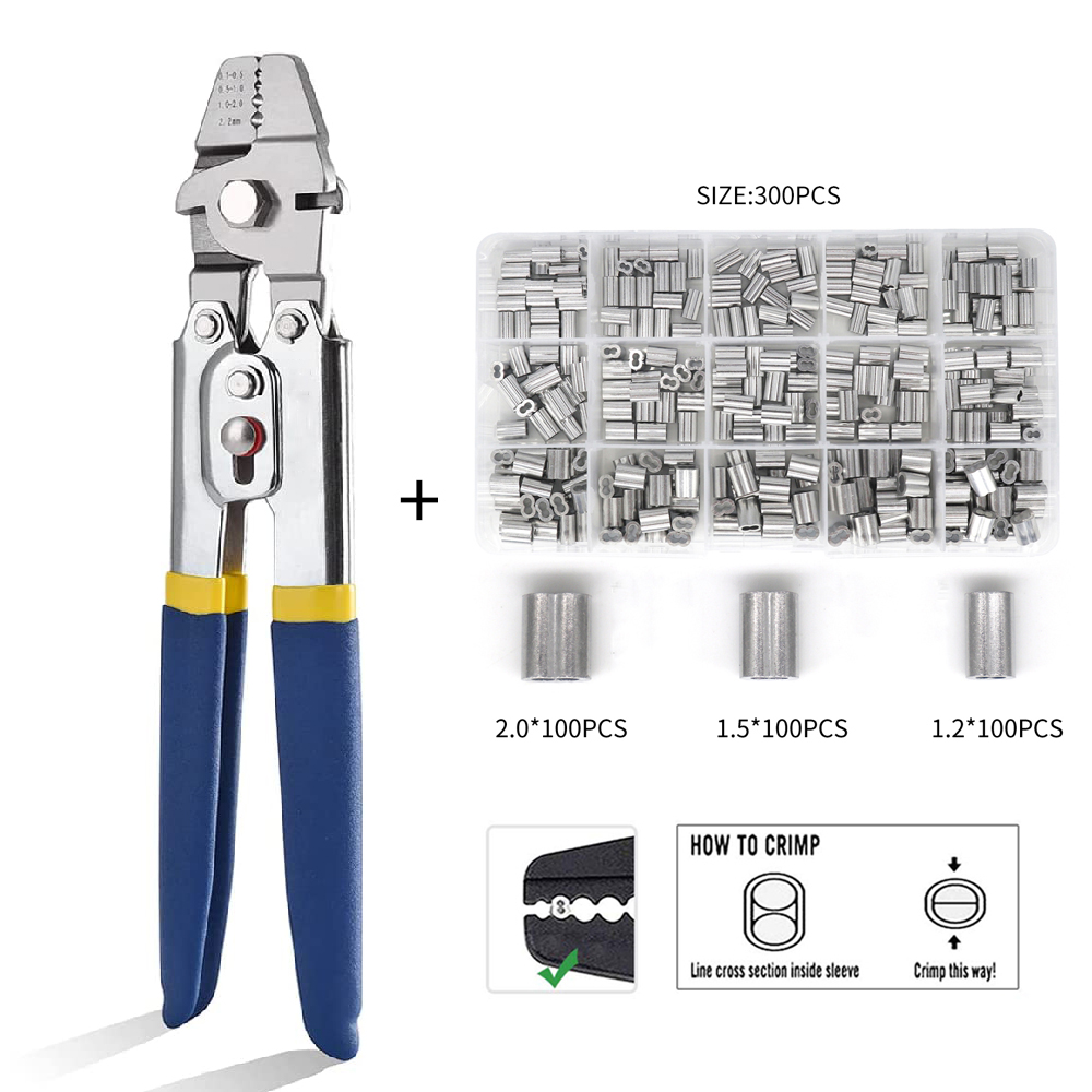 ☀【WIDE APPLICATION】4 Crimping Positions: 0.1-0.5mm,0.5-1.0mm,1.0-2.0mm,2.2mm. It can easily crimp copper / aluminum sleeve and more from 50-450 lb test line.Crimping tool coordinate with barrel ferrule can be widely used for wire rope,cable line dog leashes and etc
