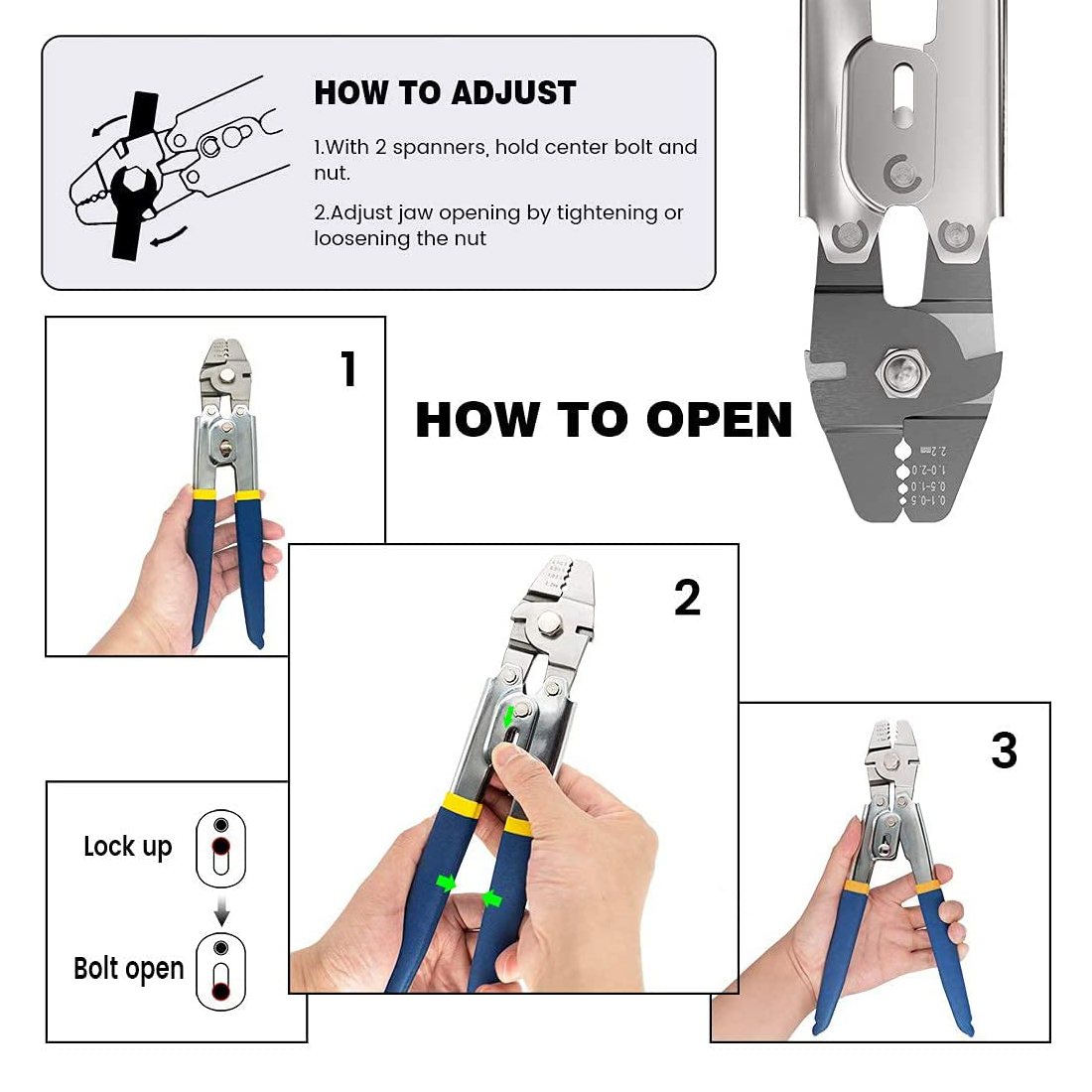 ☀【RELIABLE QUALITY】The Crimper is Made of heavy duty stainless steel for maximum corrosion resistance to be preserved by sea water corrosion or occasional inappropriate and rust.