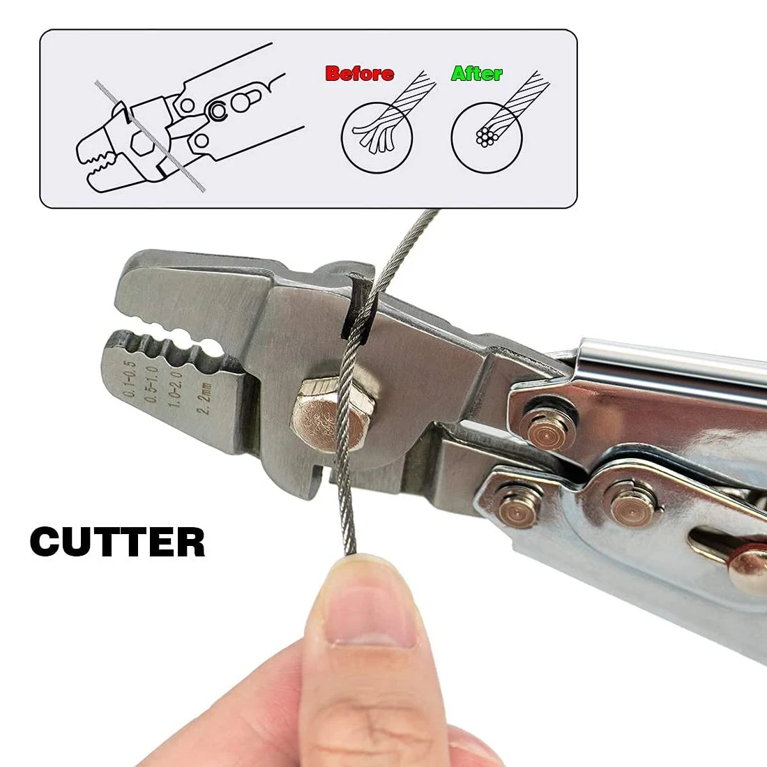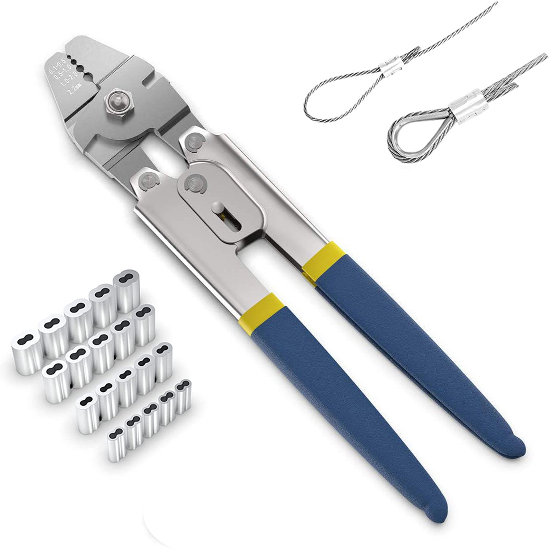 ☀【WIDE APPLICATION】4 Crimping Positions: 0.1-0.5mm,0.5-1.0mm,1.0-2.0mm,2.2mm. It can easily crimp copper / aluminum sleeve and more from 50-450 lb test line.Crimping tool coordinate with barrel ferrule can be widely used for wire rope,cable line dog leashes and etc