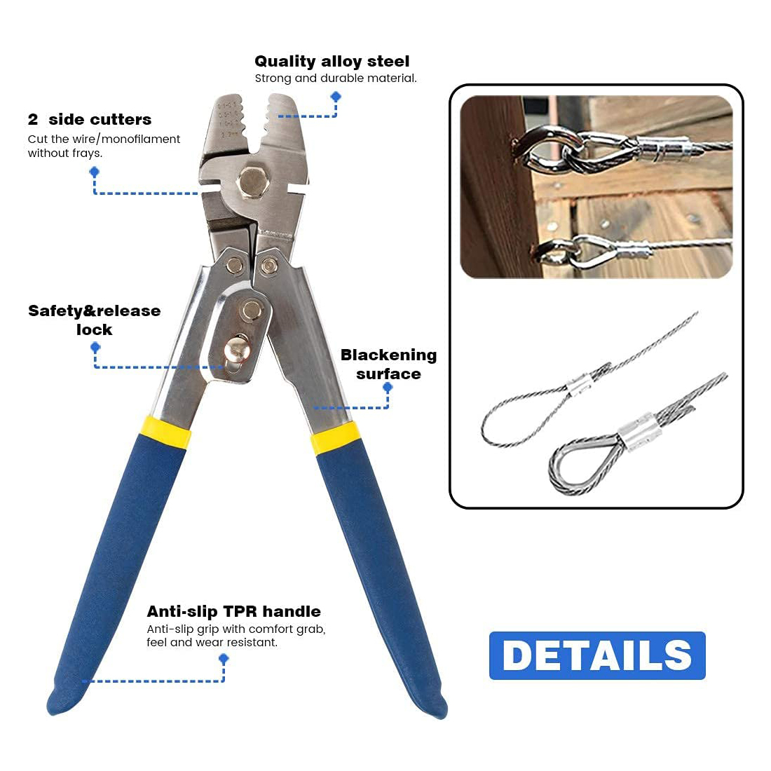 ☀【RELIABLE QUALITY】The Crimper is Made of heavy duty stainless steel for maximum corrosion resistance to be preserved by sea water corrosion or occasional inappropriate and rust.