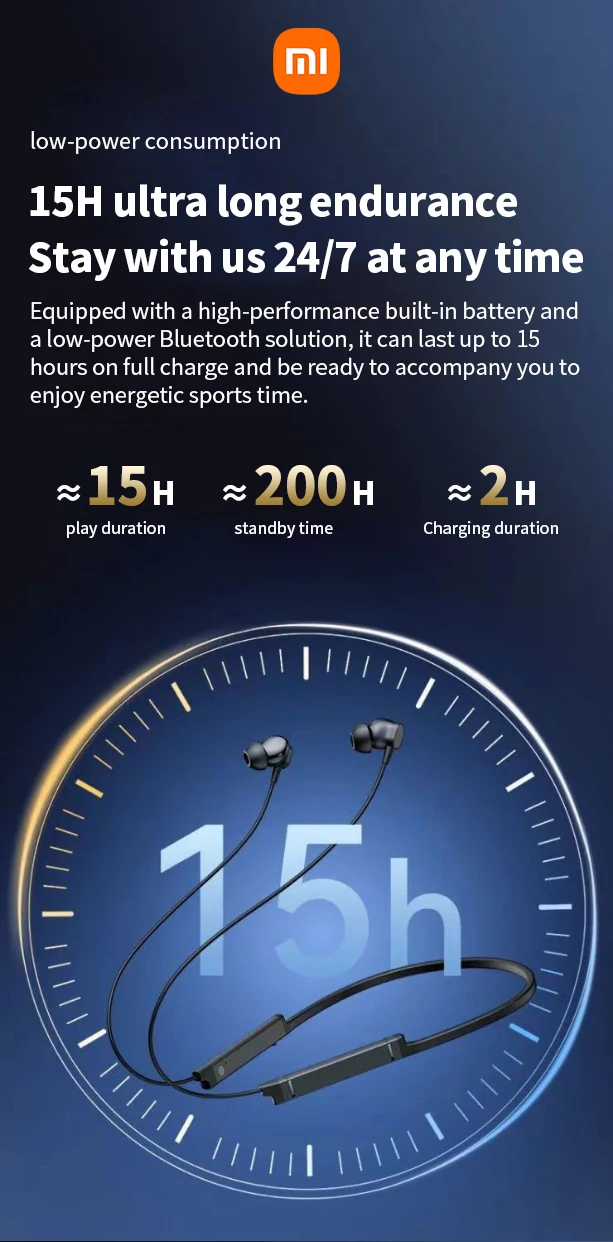 XIAOMI BS09 ENC Wireless Earphone Neckband Sport Running In Ear Headphone Bluetooth5.3 HiFi Stereo Headset With Mic 200H Standby Earbuds For Android iOS