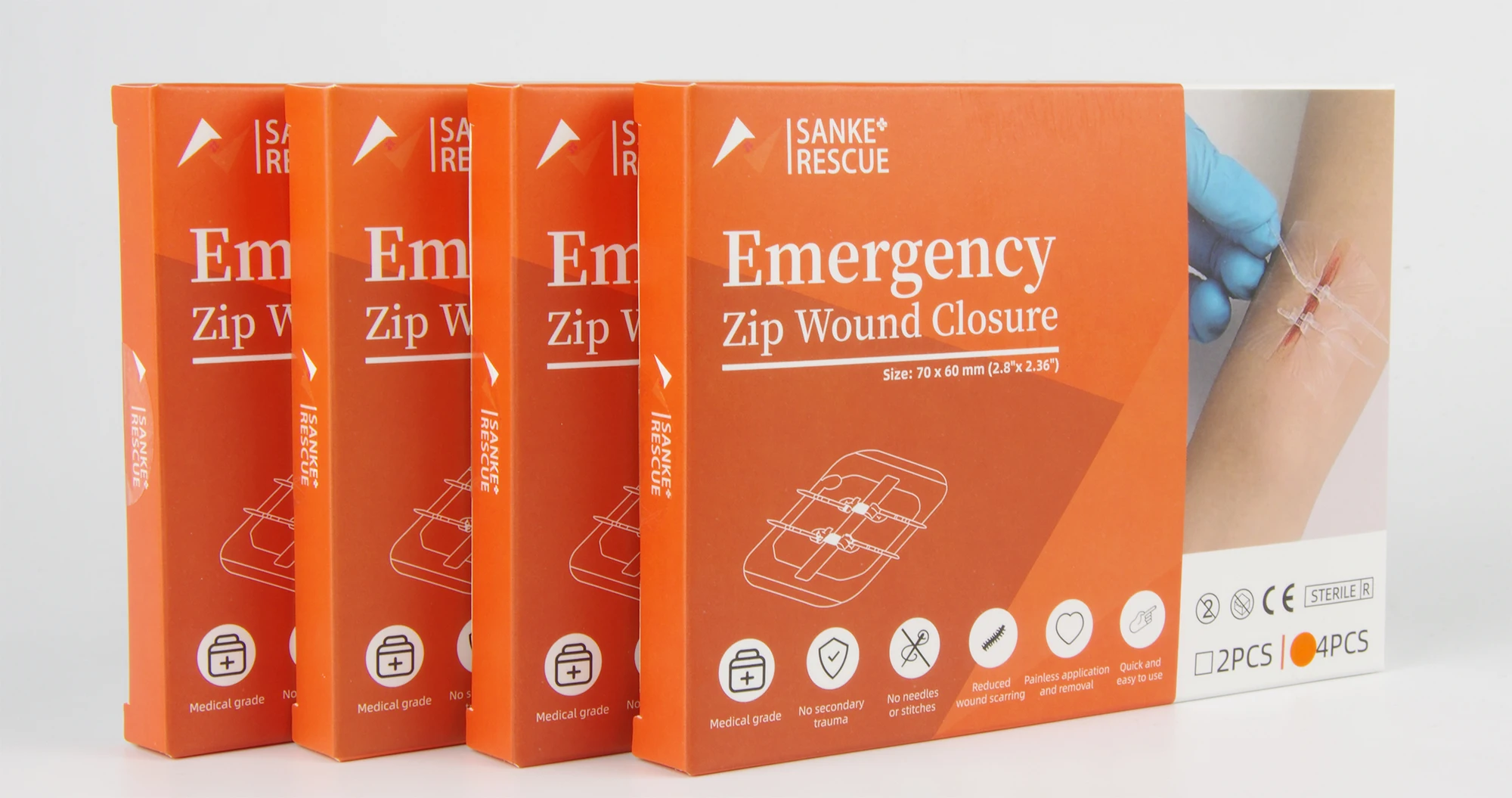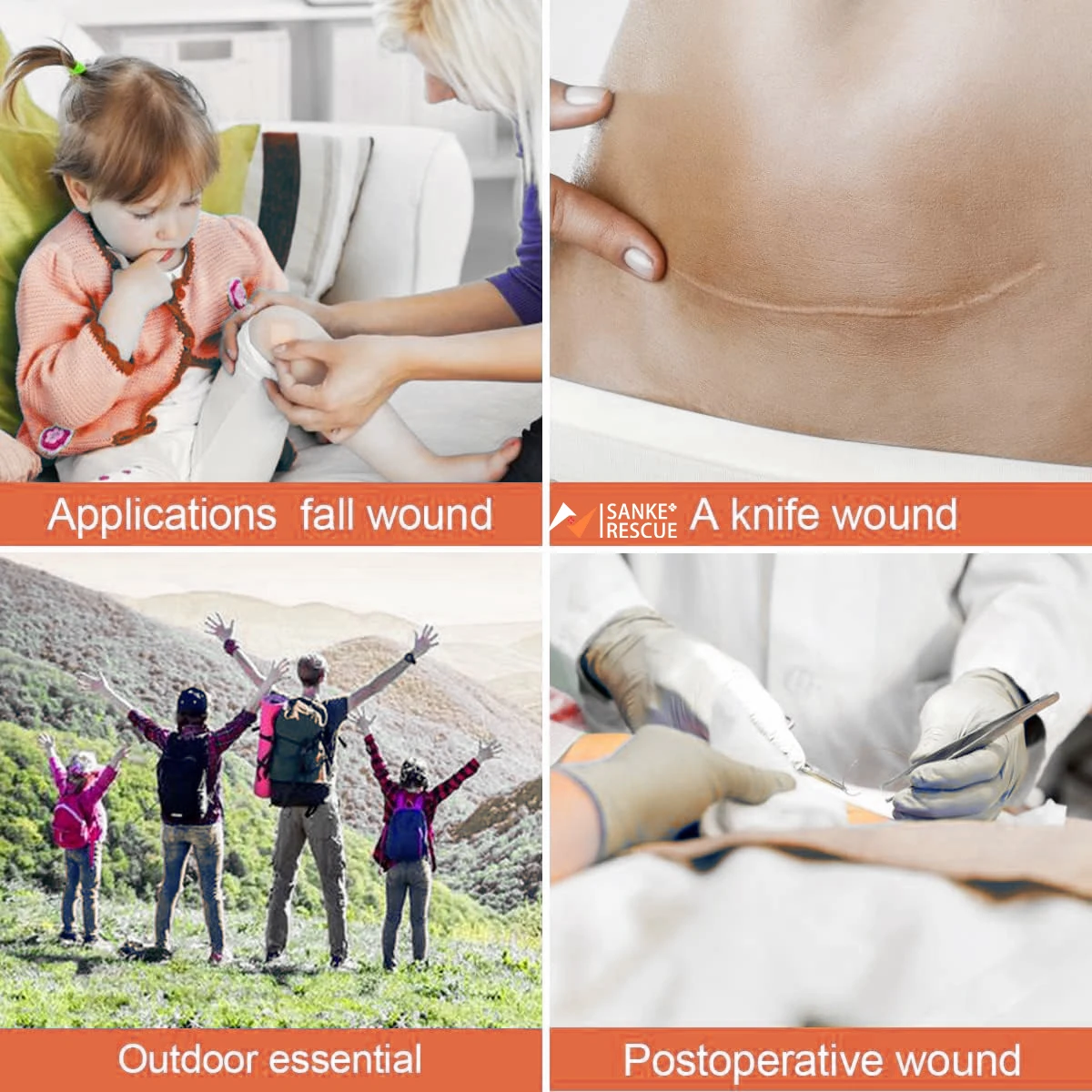 Quick and Effective Wound Closure: Sanke Rescue medical grade emergency wound closure devices include cleaning wipes and cotton swabs, which are your effective assistants in the event of accidental injuries and can effectively assist in wound closure.(2/4 Emergency Zip Wound Closures Device, 4/8 Cotton Swabs)