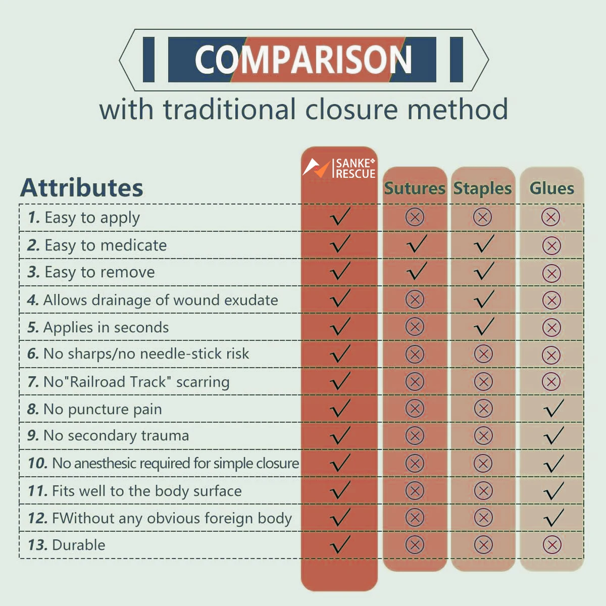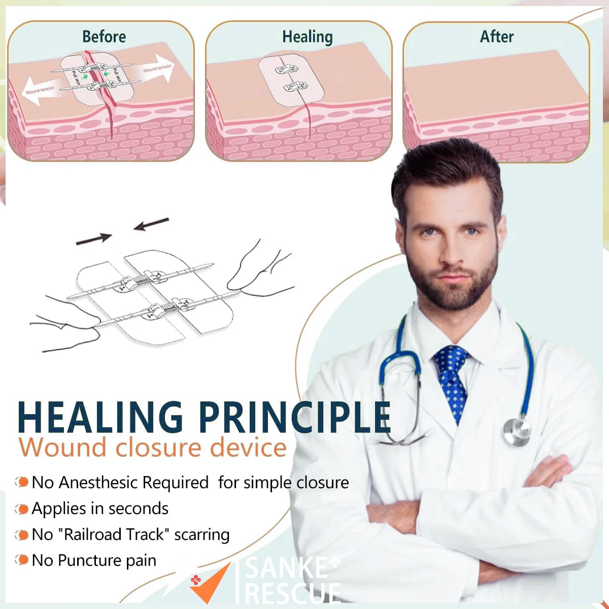 Easy to Use and Disassemble: emergency wound closure device allows you to easily, quickly and non-traumatically suture wounds. It is simple to use and can be easily removed after the wound is closed, improving the comfort of wound closure and removal.